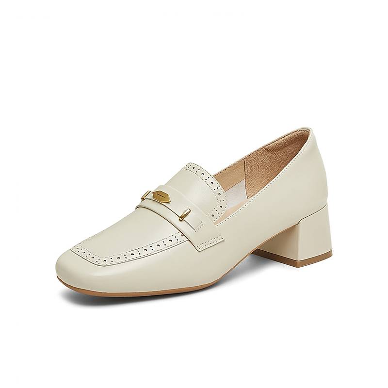 百思图2025春季商场新款通勤羊皮英伦乐福鞋粗跟女单鞋A3876AA5