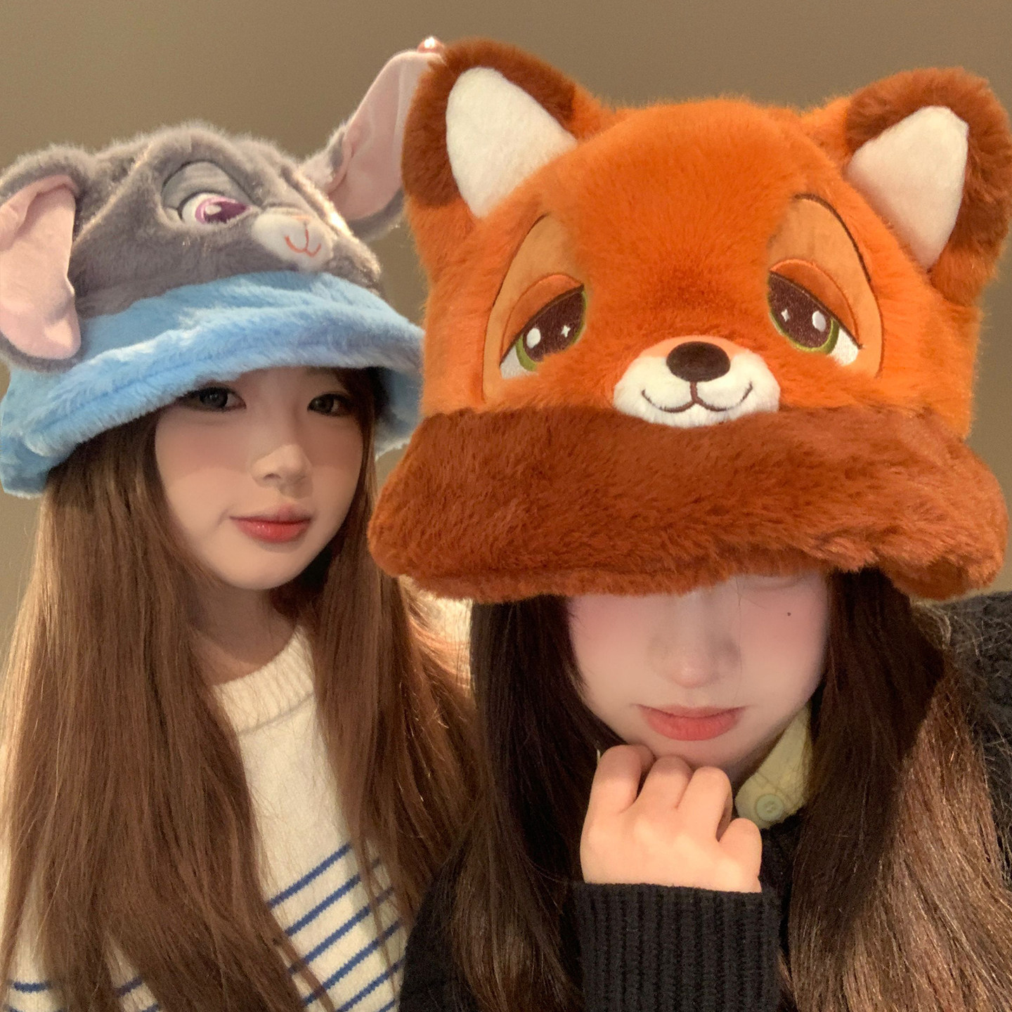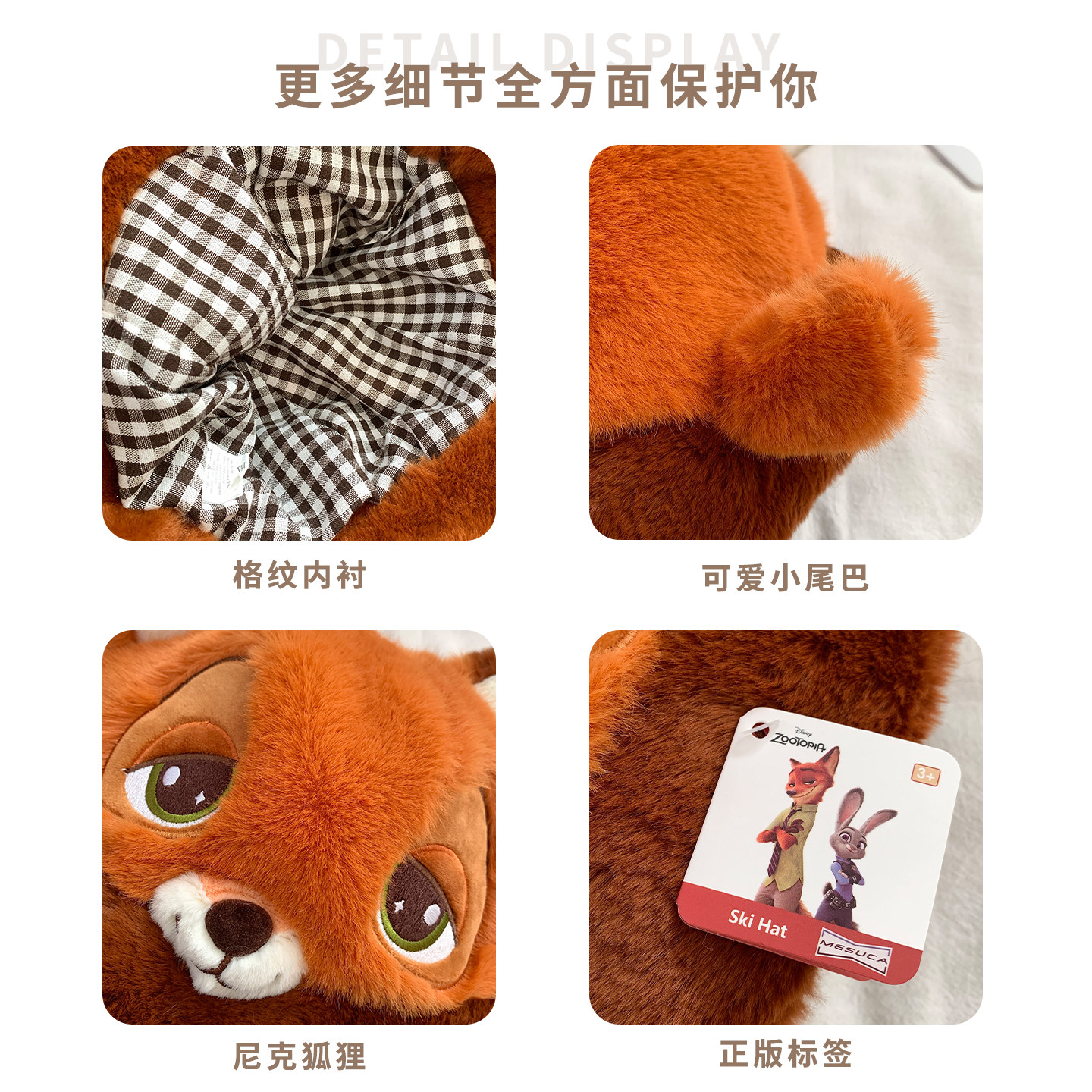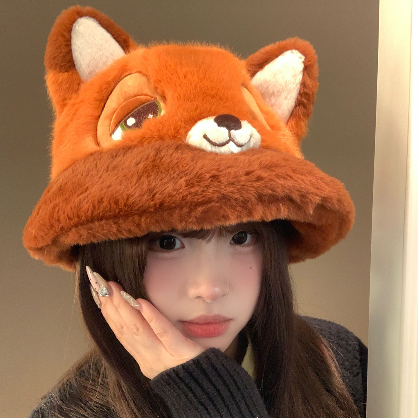 迪士尼正版火狐尼克毛绒渔夫帽女冬季保暖防寒可爱显脸小护耳帽子