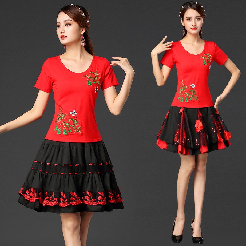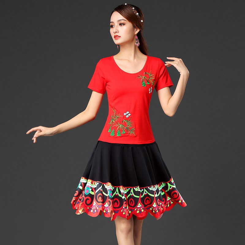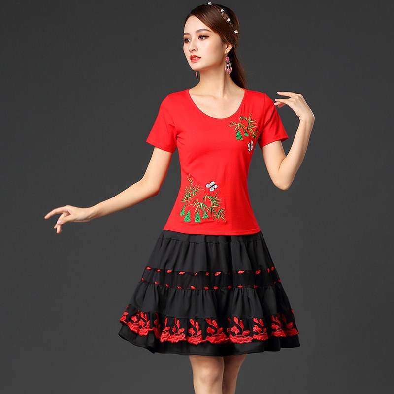 广场舞服装新款套装女民族风刺绣演出服上衣裙子团体演出表演服装