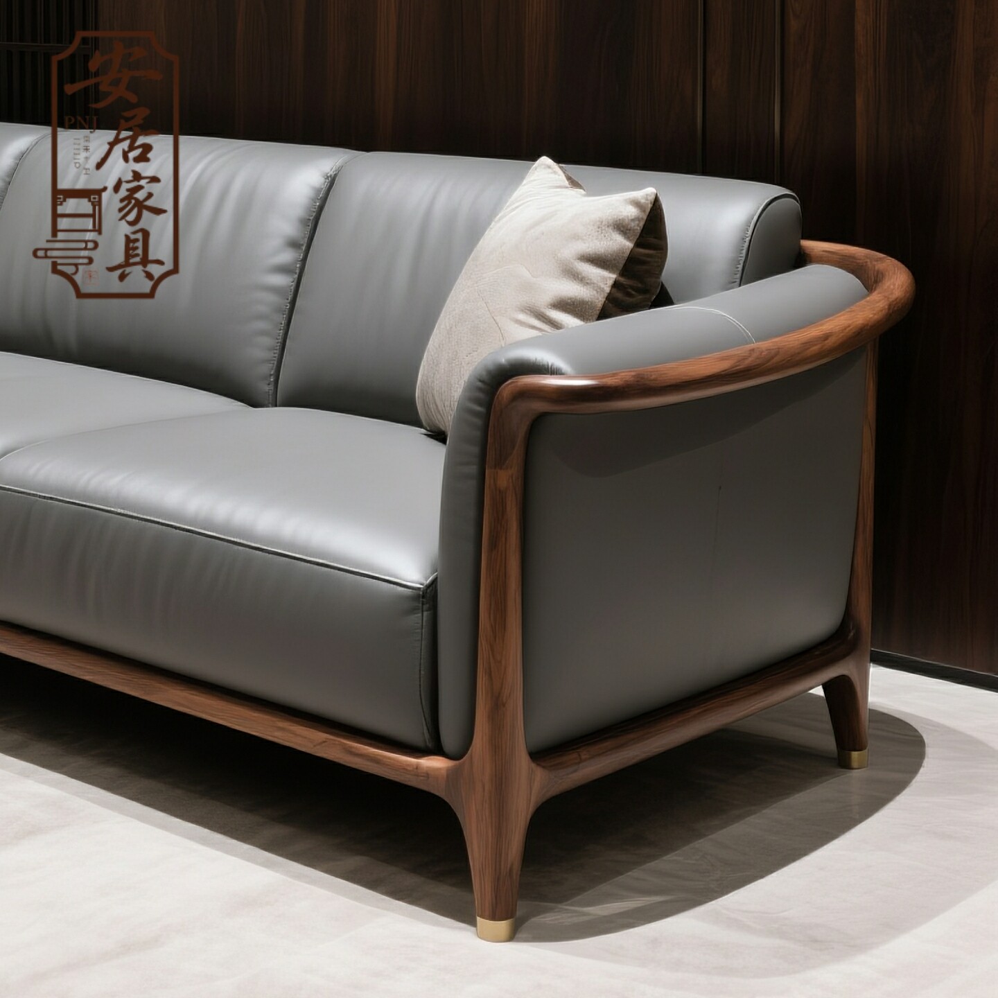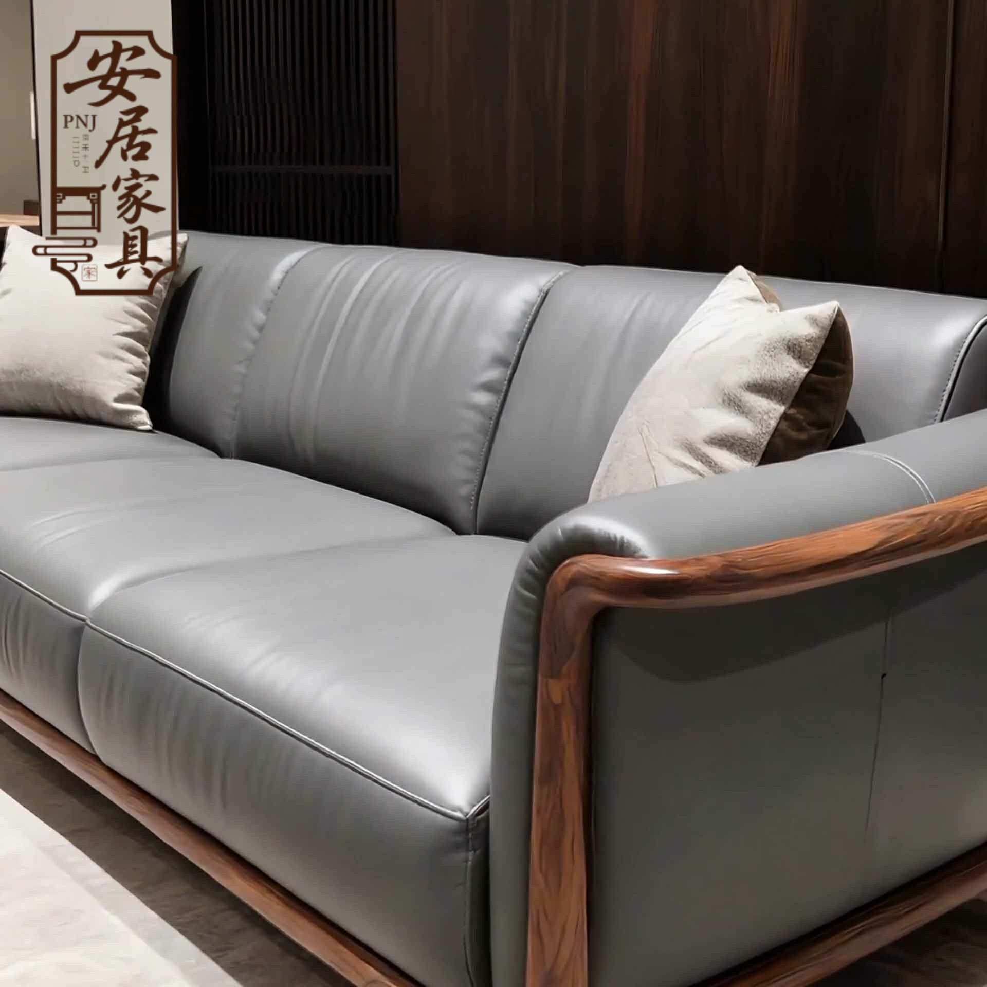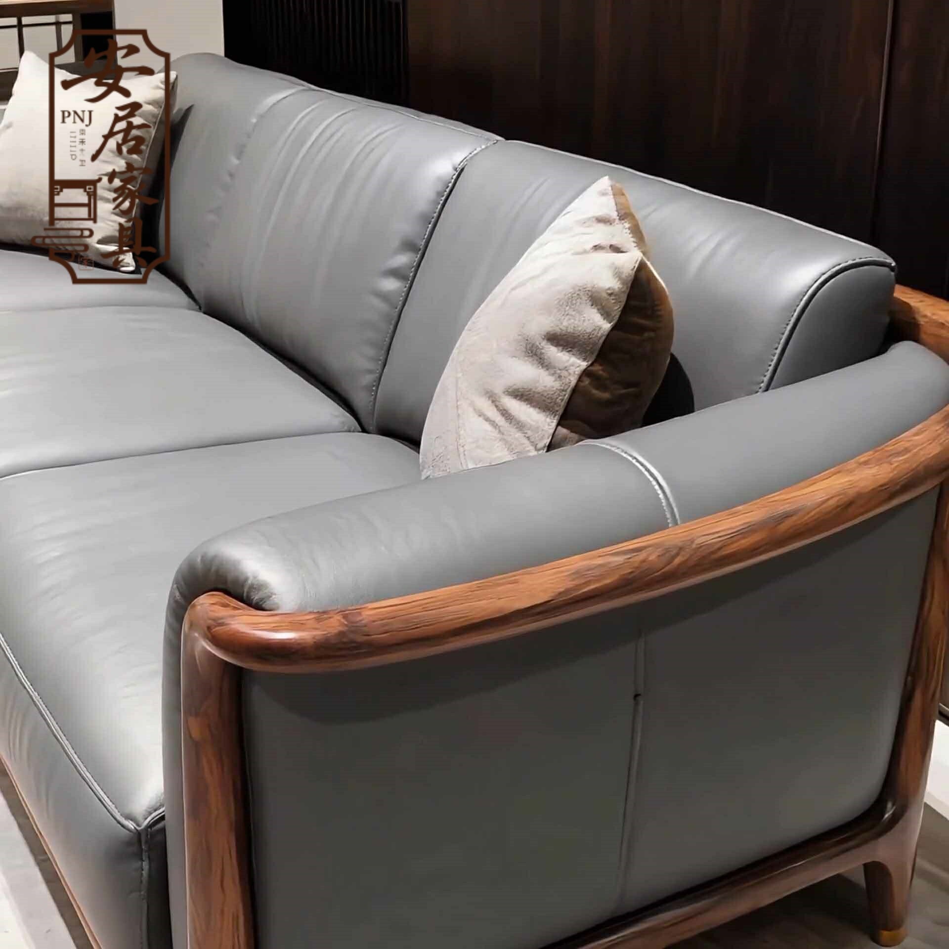 新中式北美黑胡桃木沙发 宋代美学意式高级感真皮样板房实木家具