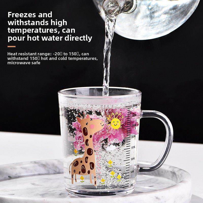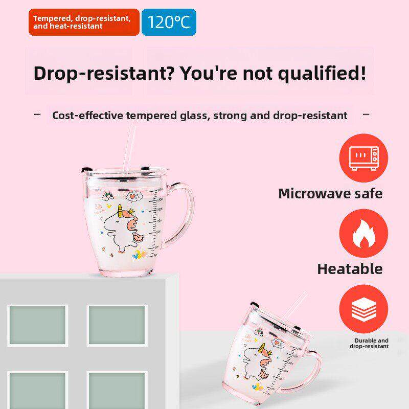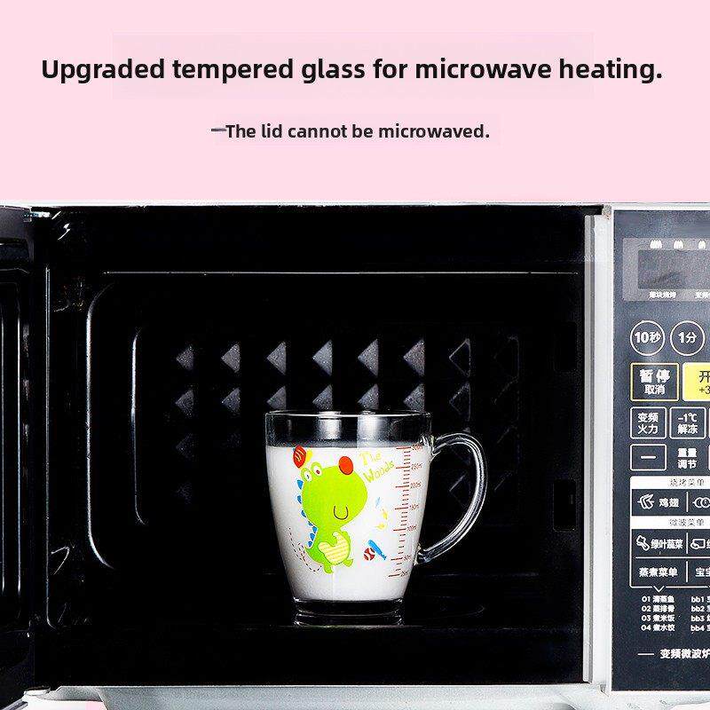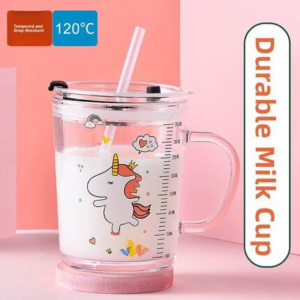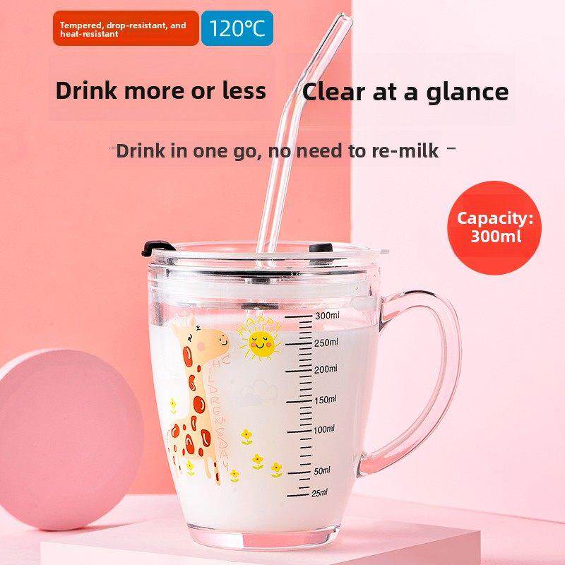 防摔带刻度儿童牛奶杯家用微波加热婴儿牛奶早餐杯钢化玻璃吸管杯