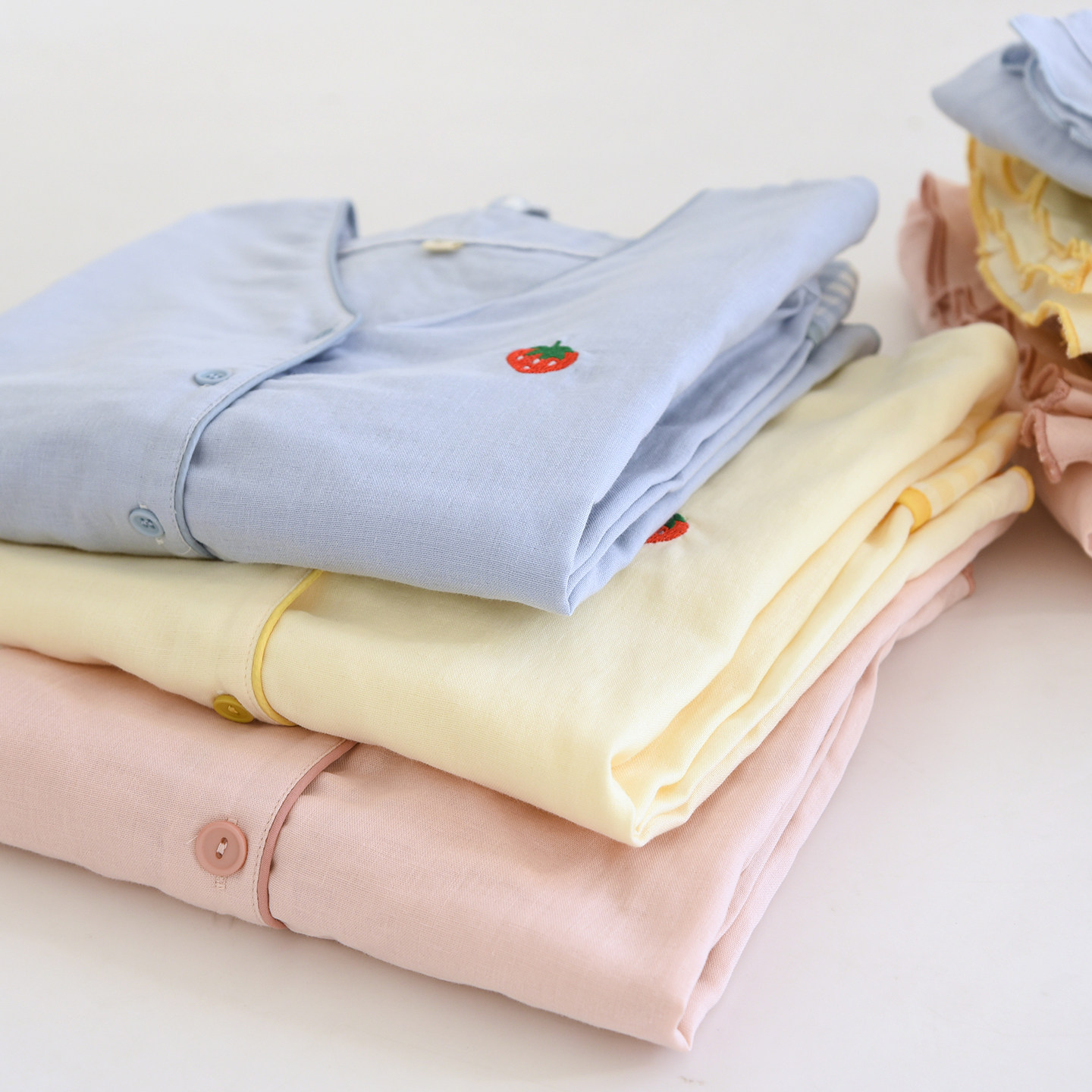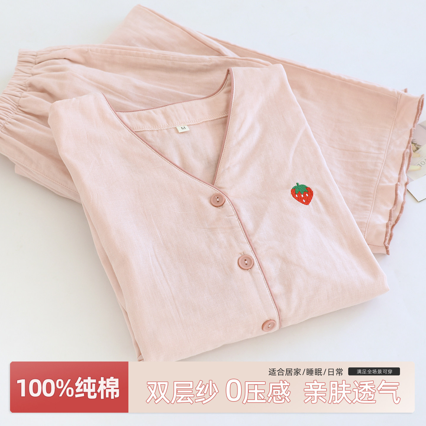V领双层纯棉纱布春夏季睡衣女全棉甜美长袖长裤家居服套装可外穿