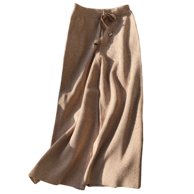 气场单品 松紧腰系带针织阔腿裤女秋冬季加厚竖坑条宽松九分裤