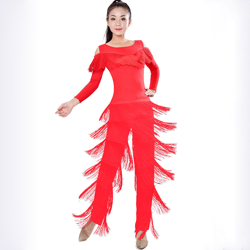 女成人拉丁舞裤流苏儿童裤子广场舞服装摩登裙裤跳舞舞蹈裤长裤