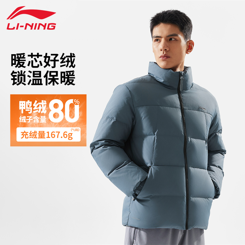 李宁羽绒服男款冬季无帽立领鸭绒保暖户外运动防泼水时尚外套短款