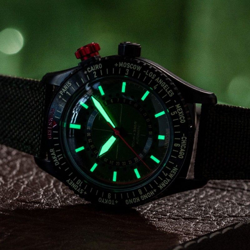 代购正品UNDONE男表复古飞行员腕表夜光GMT第二时区自动机械手表