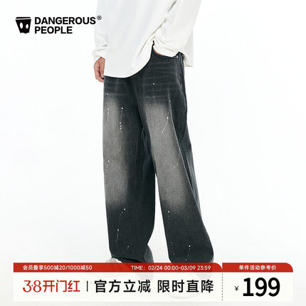 Dangerouspeople薛之谦dsp泼墨水洗牛仔裤宽松美式潮直筒休闲长裤