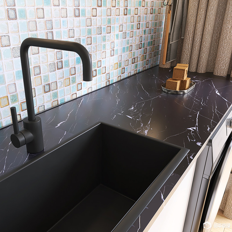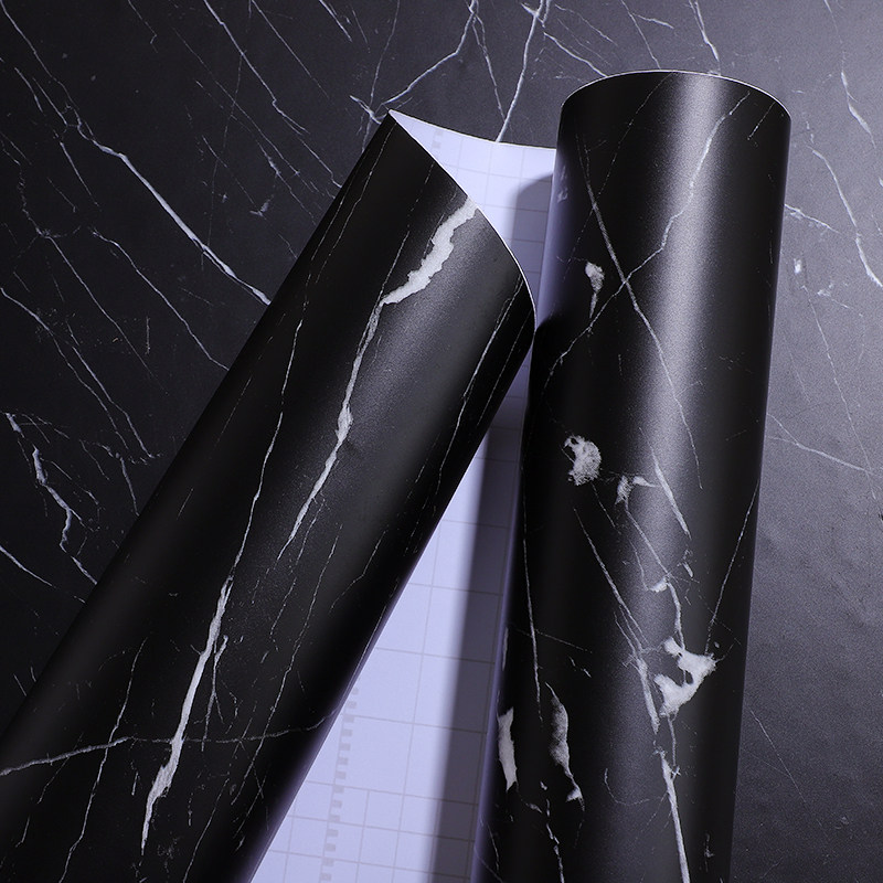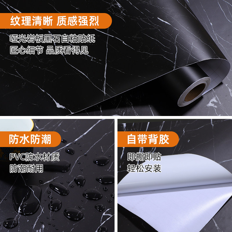 黑色哑光加d厚大理石纹防水贴纸墙纸自粘贴纸厨房防油岩板桌面墙