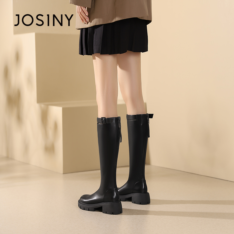 卓诗尼冬女靴撤柜正品长筒靴复古擦色圆头厚底摩登骑士靴百搭显瘦