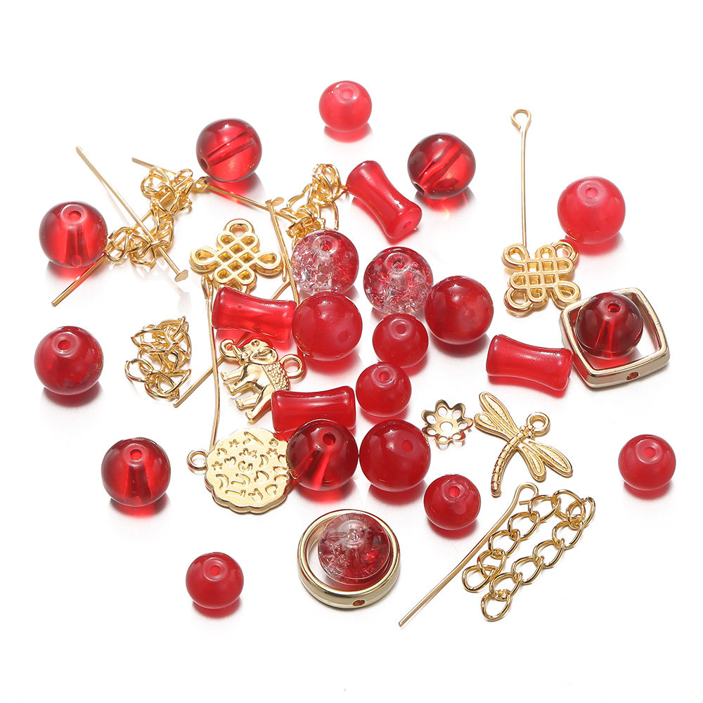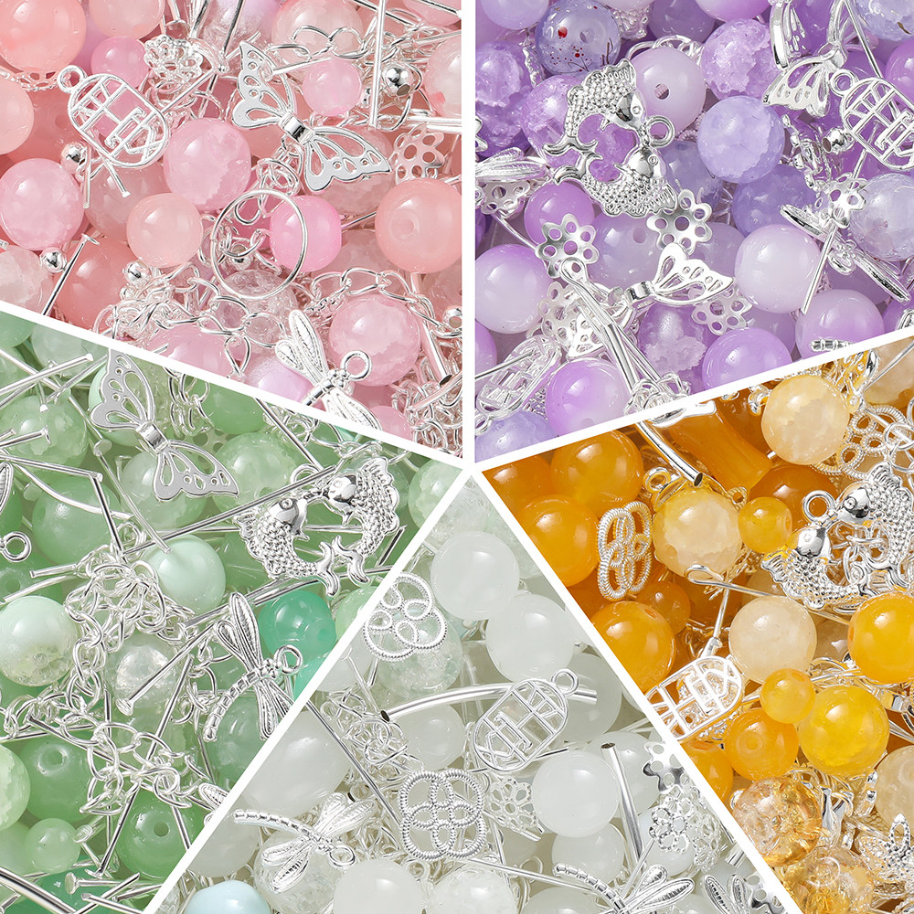 串珠材料色系混款珠子手工diy手串手链散珠玻璃珠金银配饰套装