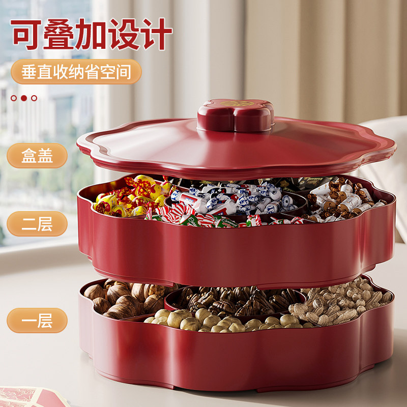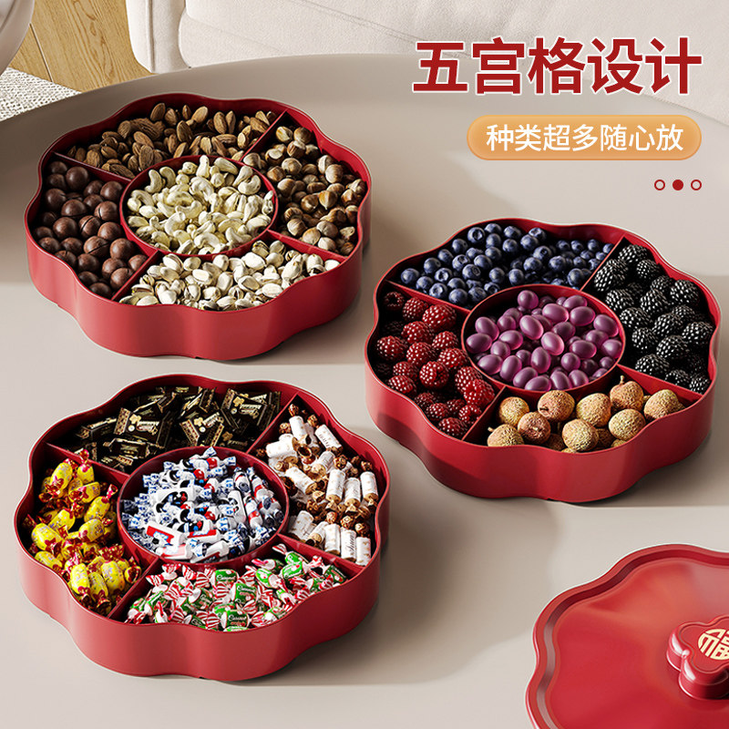喜庆糖果盒轻奢高档家用客厅乔迁之喜果盘分格零食点心干果收纳盒