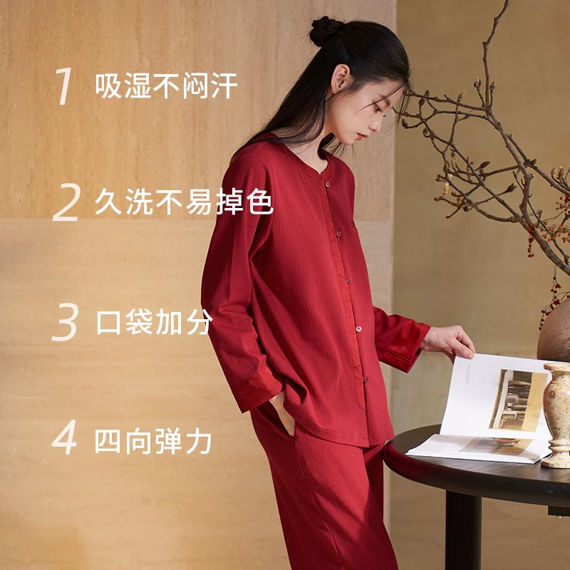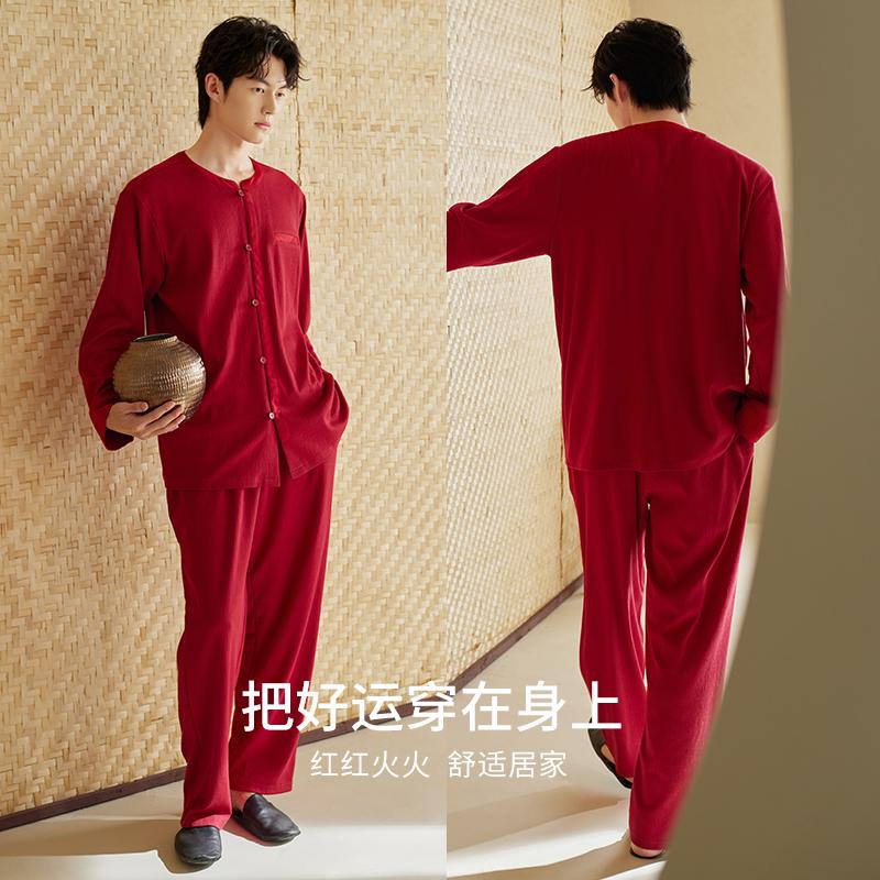 轩靓情侣睡衣红色春秋季纯棉长袖