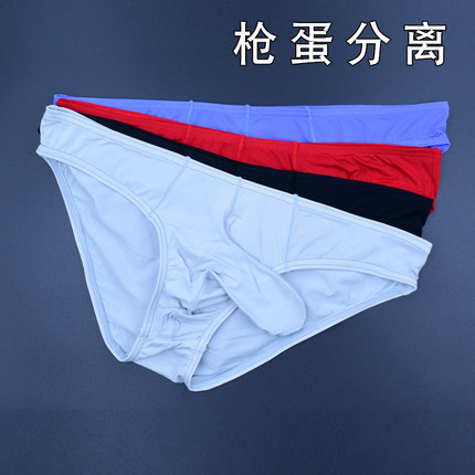 枪蛋分离男士三角低腰内裤性感个性新潮冰丝速干透明日韩风格短裤