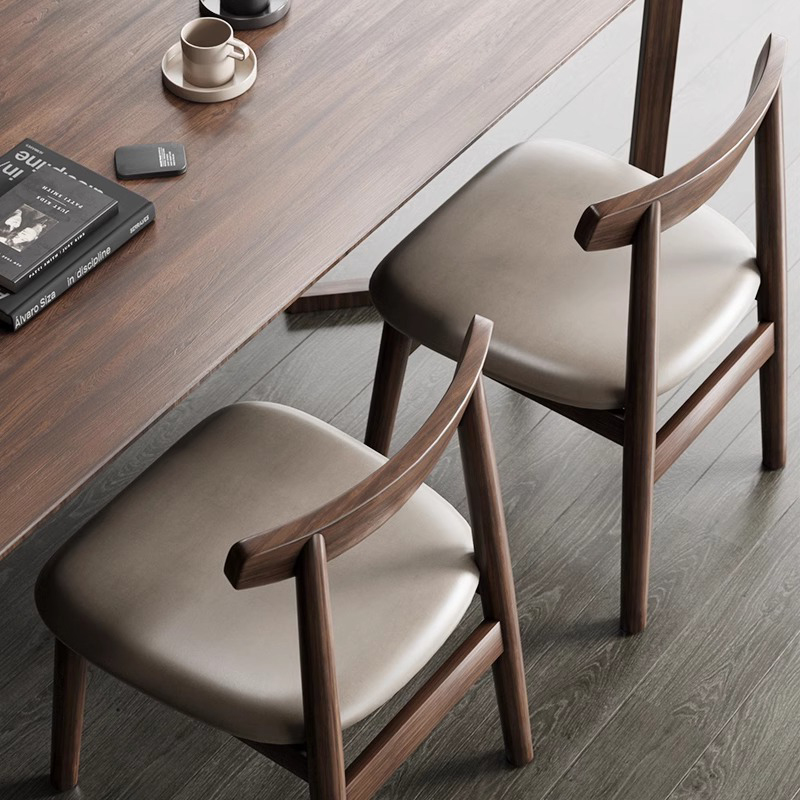 实木餐椅牛角椅侘寂风胡桃色靠背椅家用吃饭椅子商用餐厅餐桌凳子