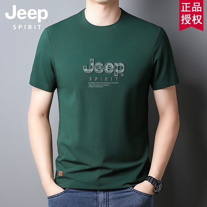 吉普夏季男士短袖圆领T恤莫代尔透气商务休闲刺绣logo体恤潮