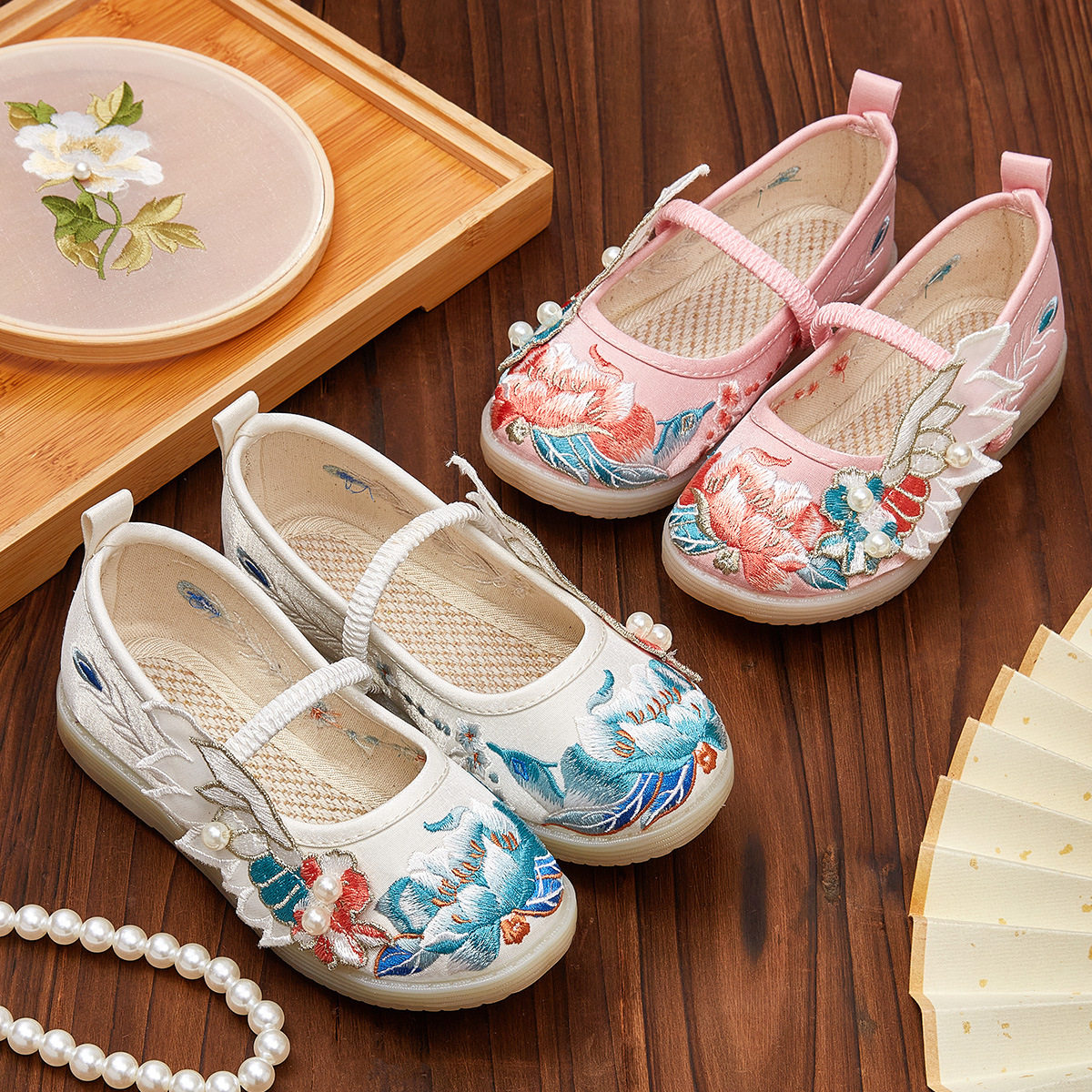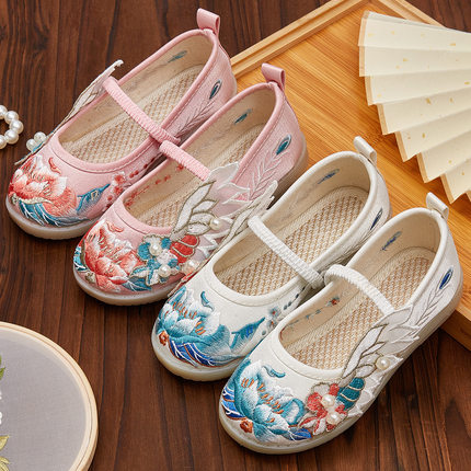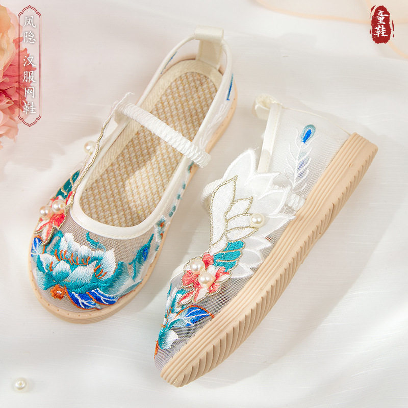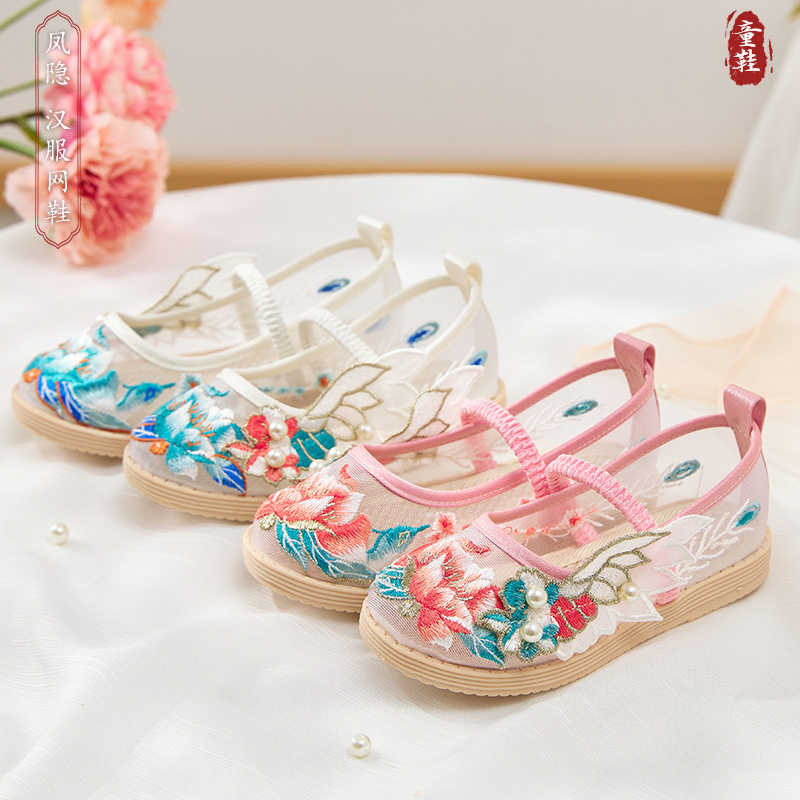 女童春夏布鞋儿童绣花鞋古风鞋老北京传统网纱童鞋民族风汉服鞋