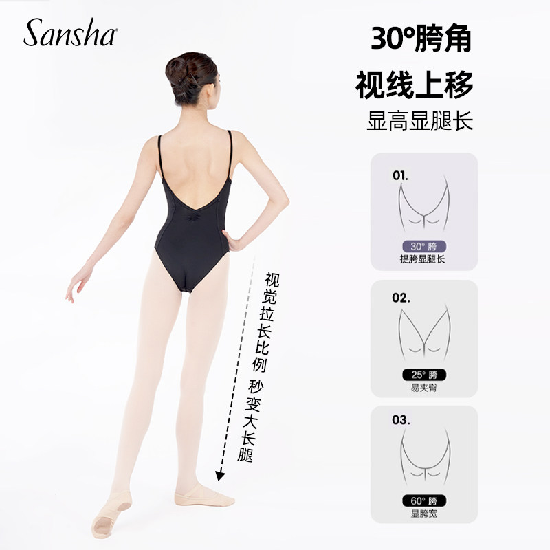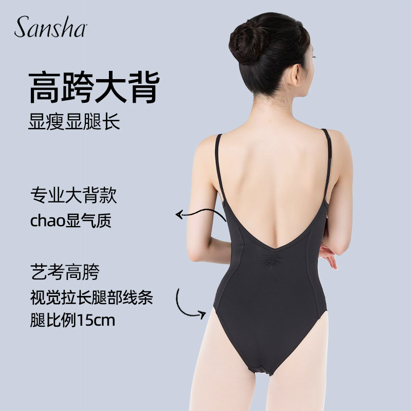 sansha三沙高跨艺考形体服芭蕾体操服黑色舞蹈练功服女成人考级服