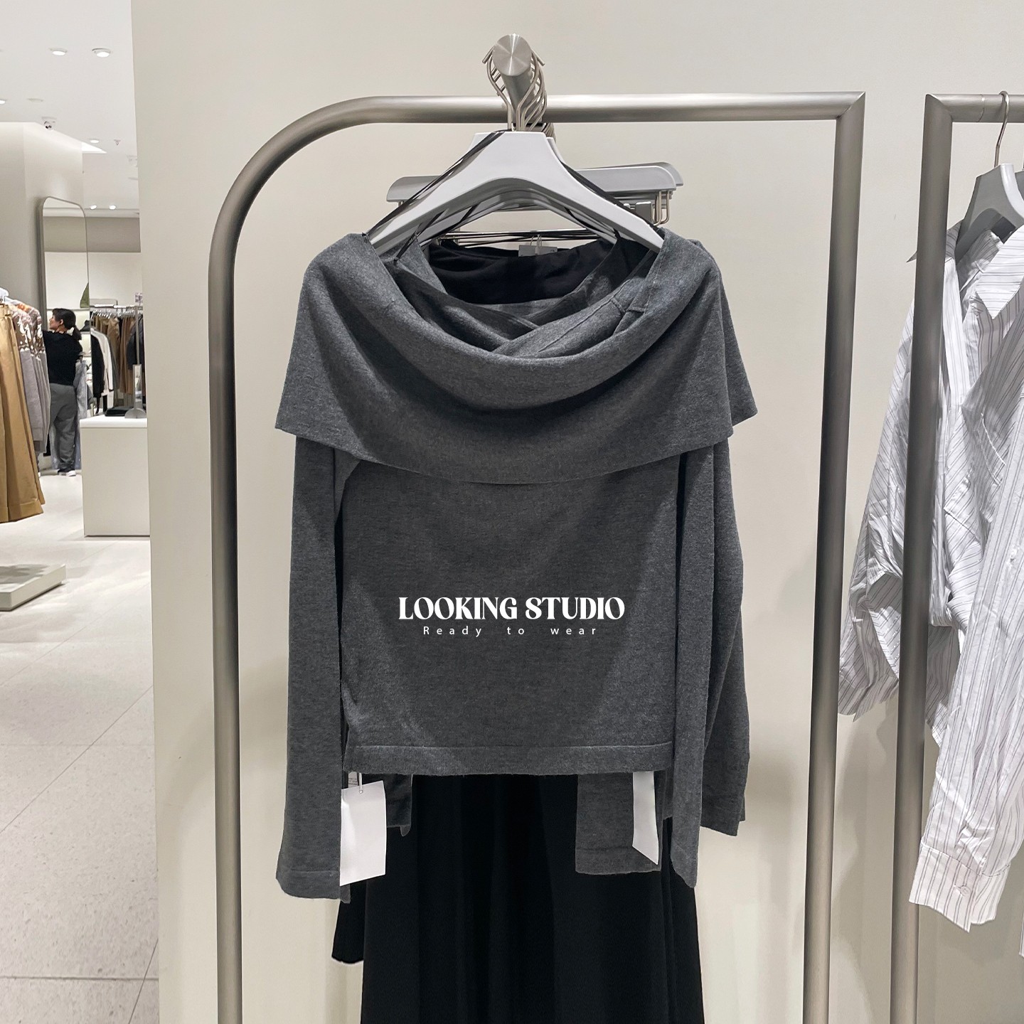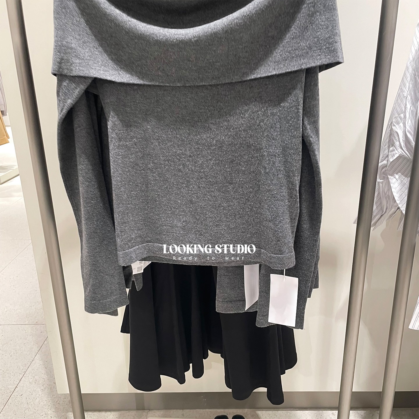UR&DC2025秋季新款纯欲气质简约一字领修身短款长袖针织衫女上衣