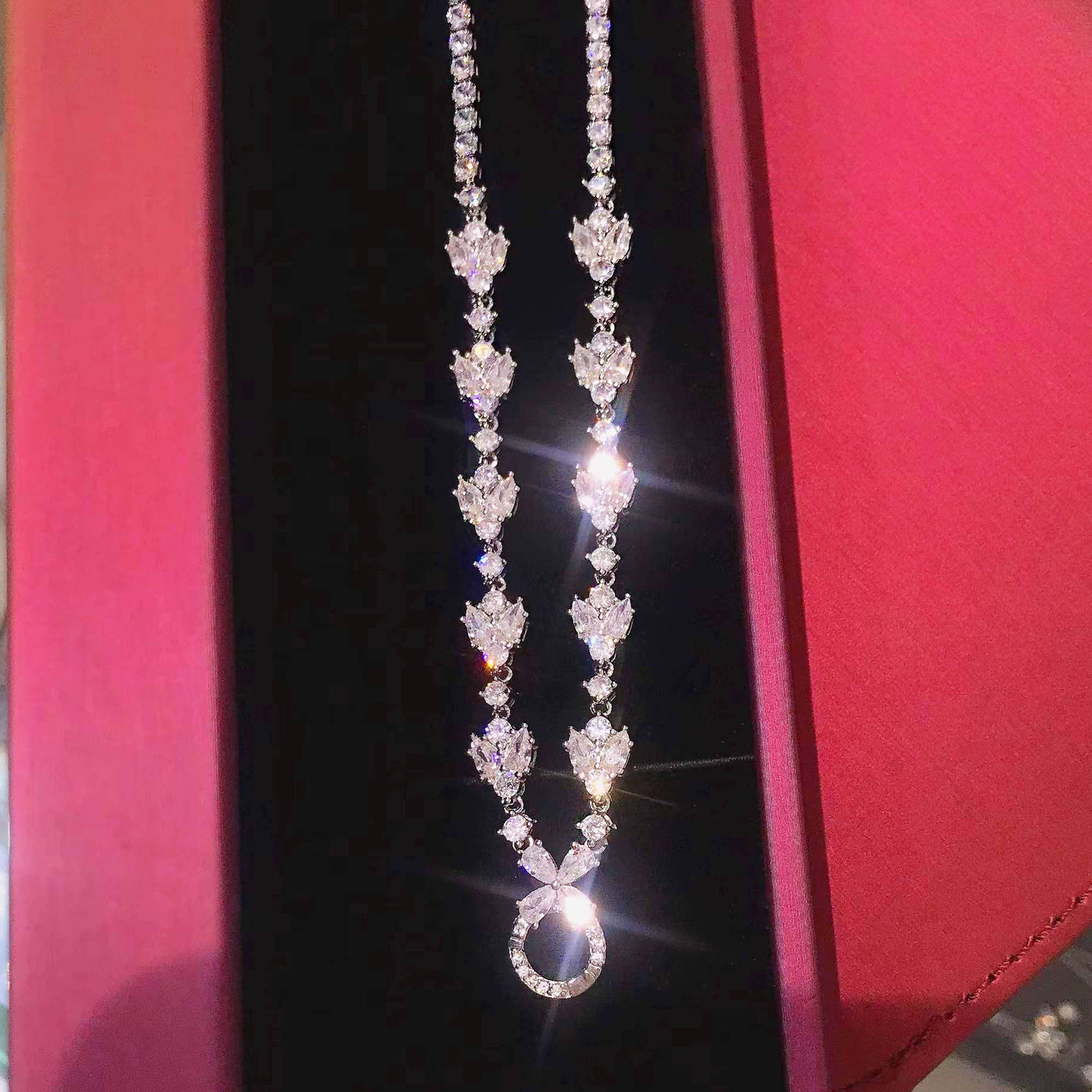 Young镶满钻万能项链女高档翡翠彩宝碧玺吊坠扣通用项链万能链女