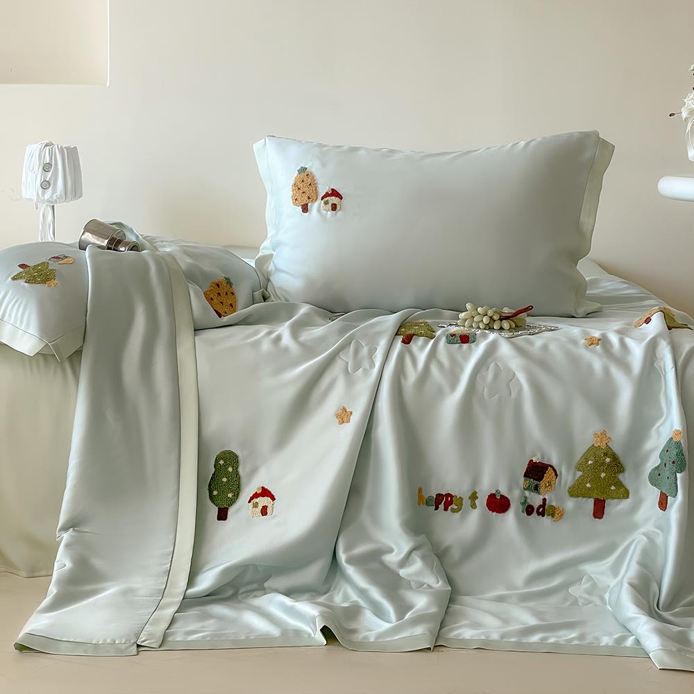 在耳边ins风卡通毛巾绣儿童夏凉被60s兰精天丝空调被可水洗薄被子