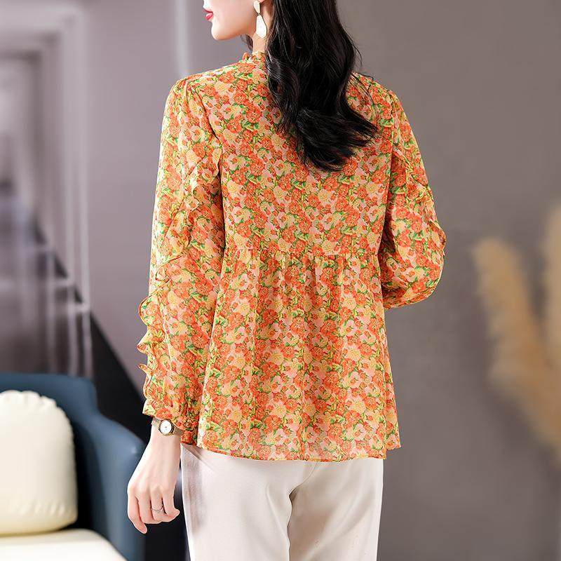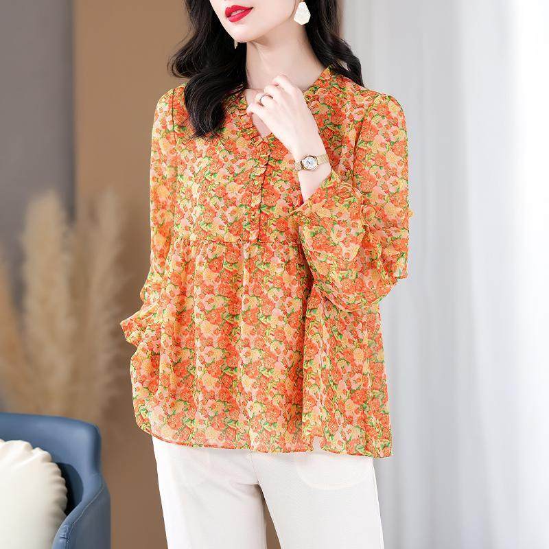 优雅气质雪纺上衣大码时尚女装2025春季新款碎花长袖上衣法式小衫
