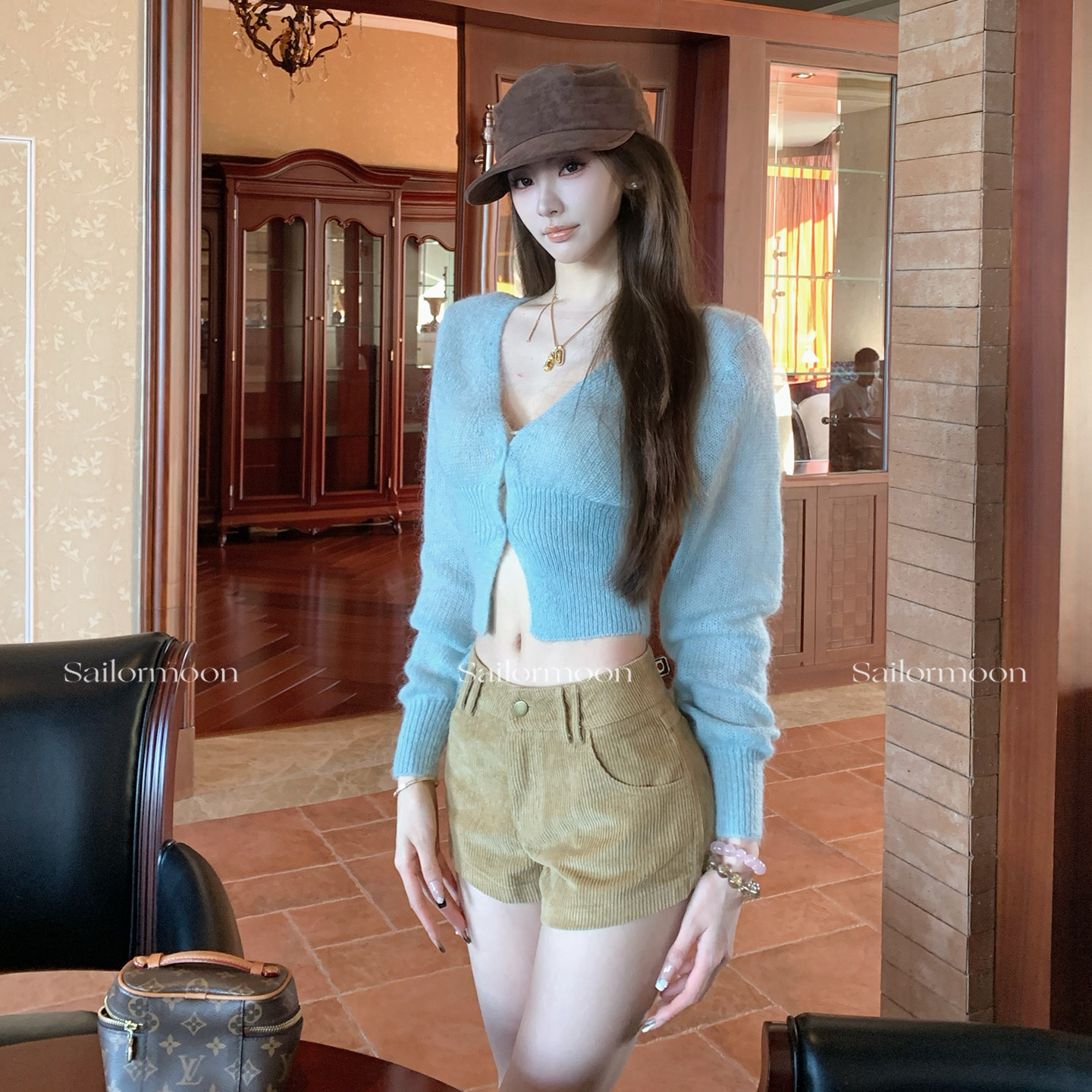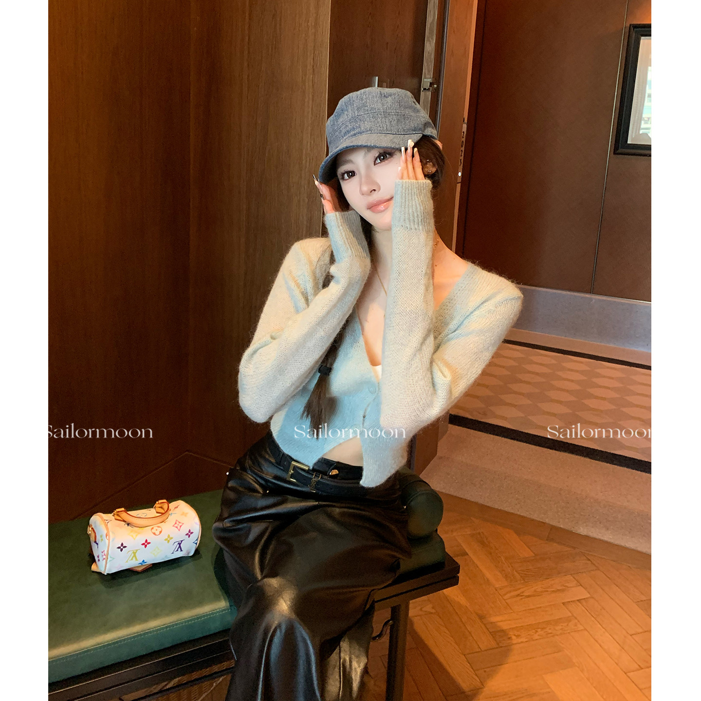 F PROJECT【起司奶芙】羊毛马海毛V领针织开衫女早秋显瘦百搭毛衣