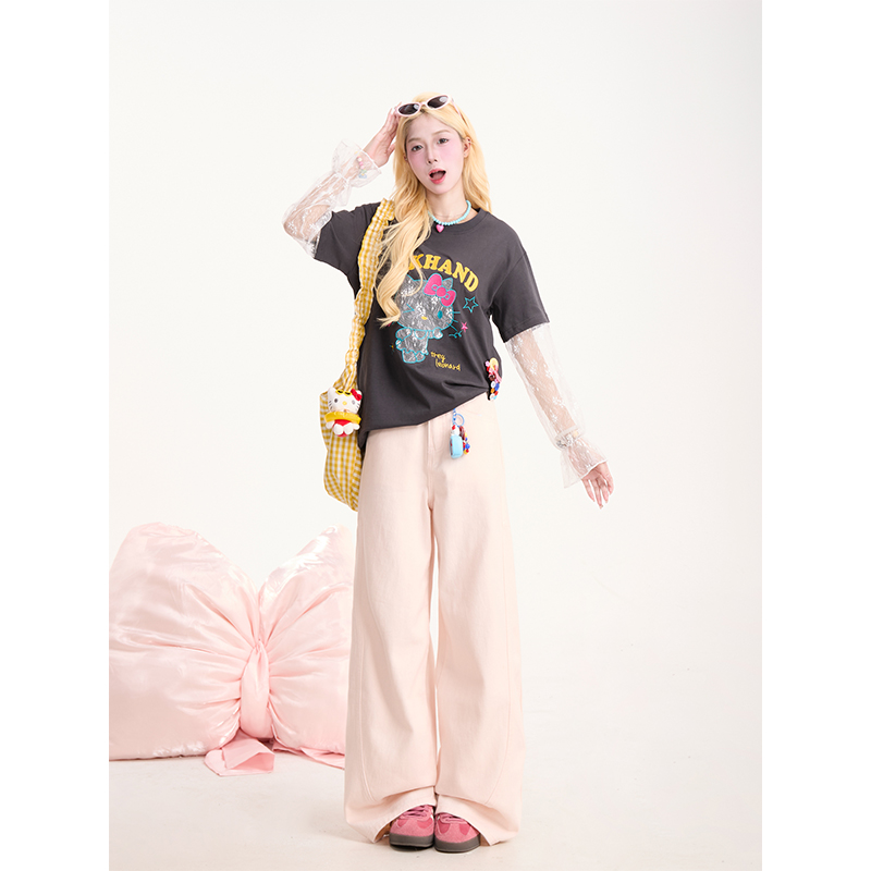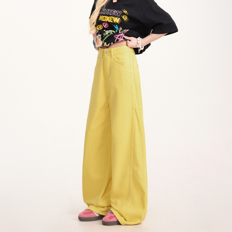NERESUM蓝色牛仔裤女夏日多巴胺水洗休闲裤垂感慵懒直筒阔腿裤
