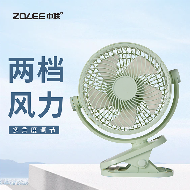 中联USB风扇台扇夹扇学生宿舍低音桌面电风扇2档调速便携轻便办公