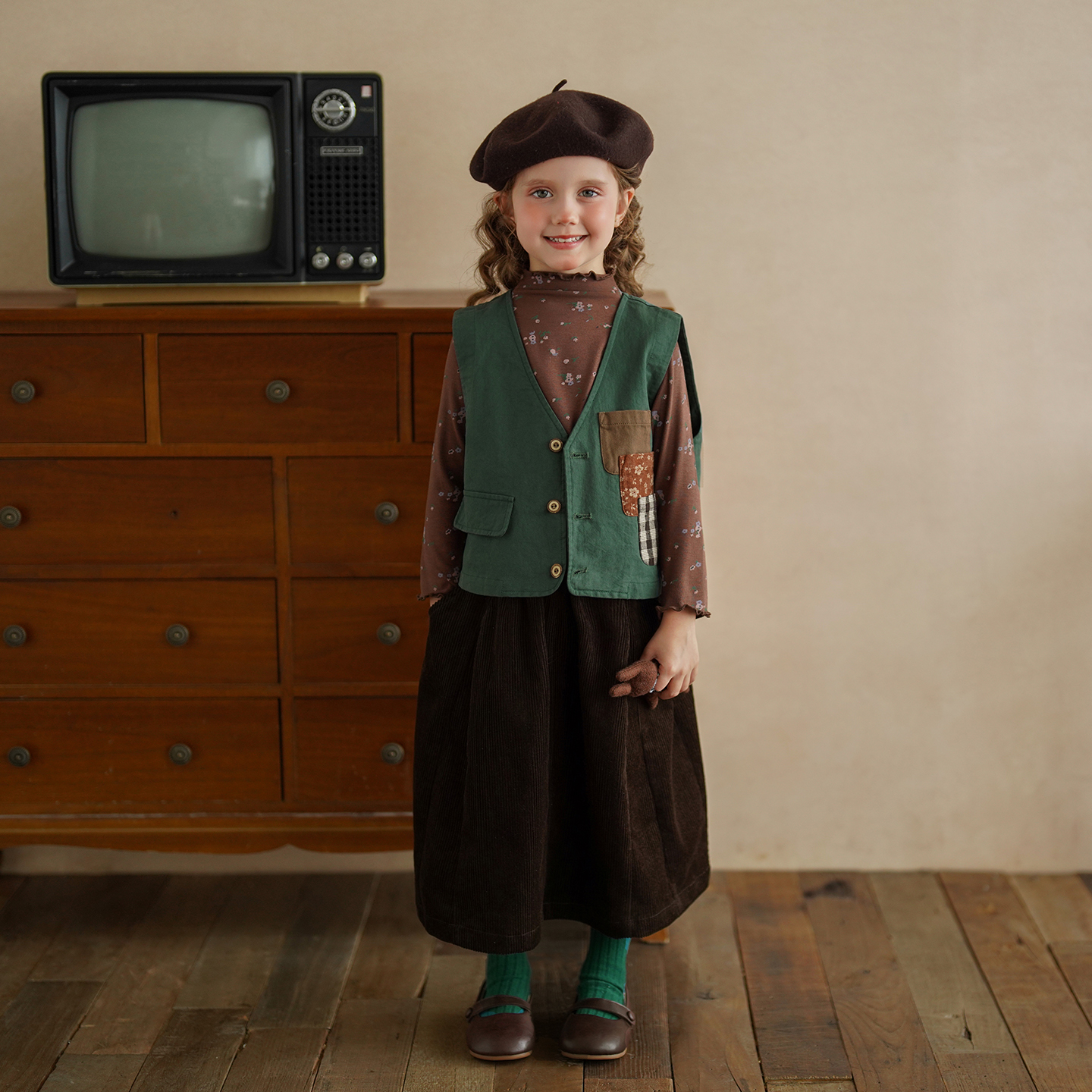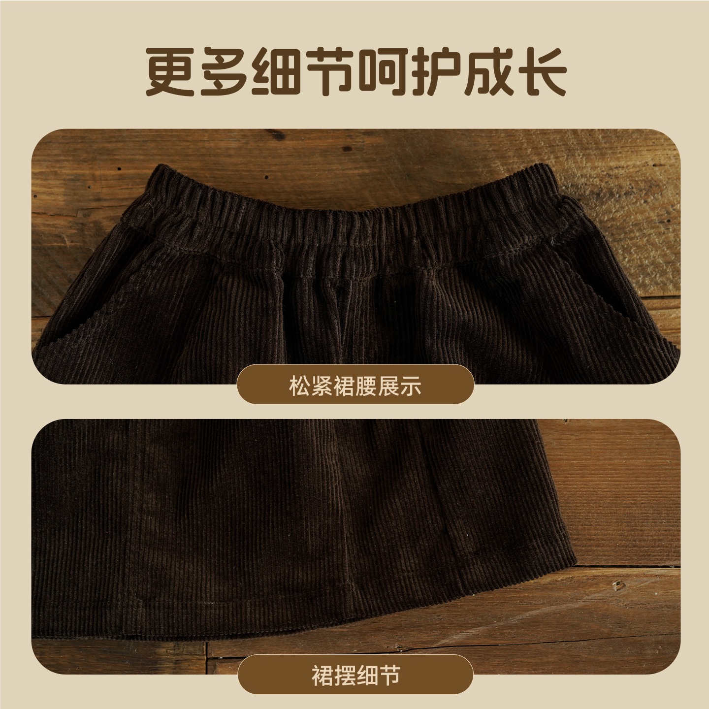 砚台家女童纯棉灯芯绒裙子女孩秋冬新款儿童复古半身裙宝宝中长裙