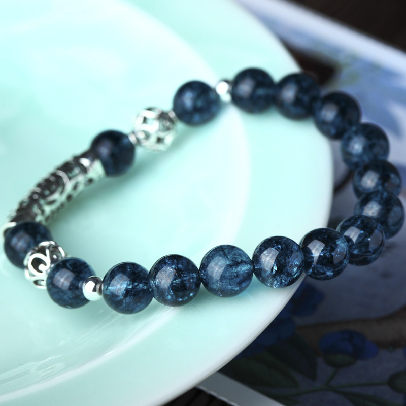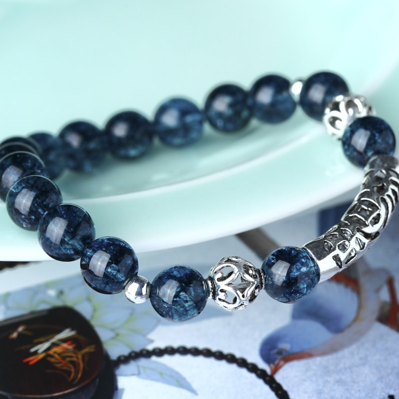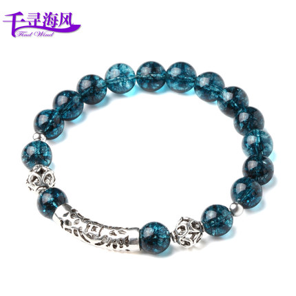 千寻海风 醉蓝蓝水晶S925银饰手链 原创手工水晶手串 时尚中国风