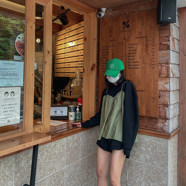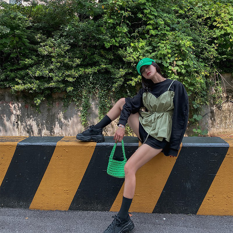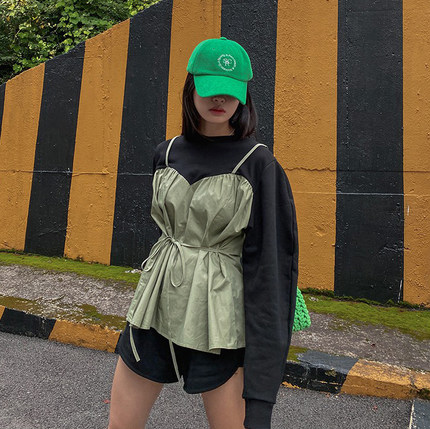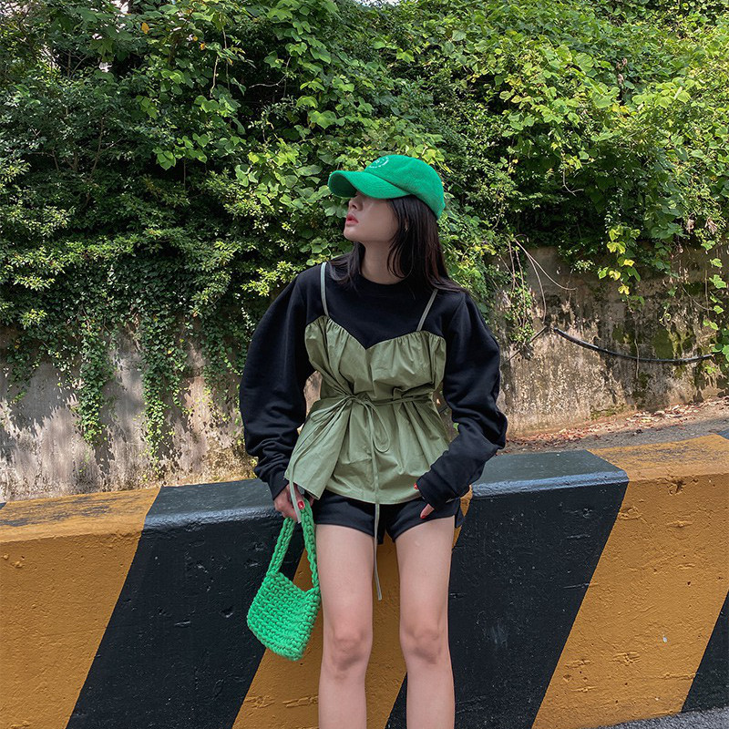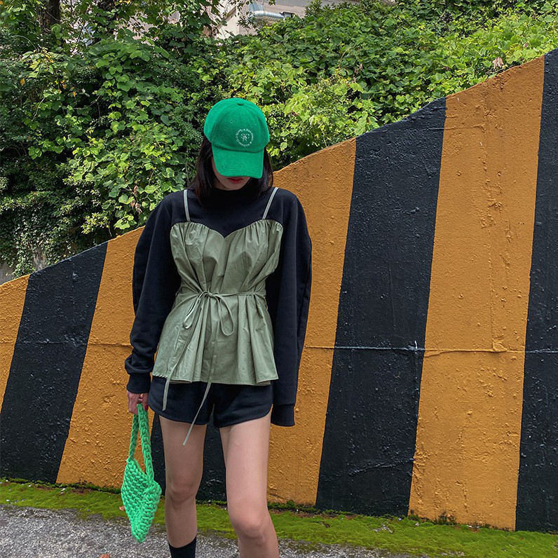 韩国撞色假两件洋气卫衣