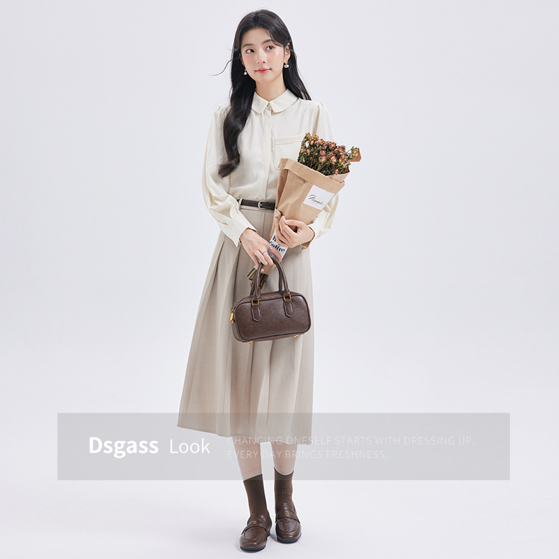达佳诗白色长袖衬衫女士2025早秋新款女装气质高级独特别致小上衣
