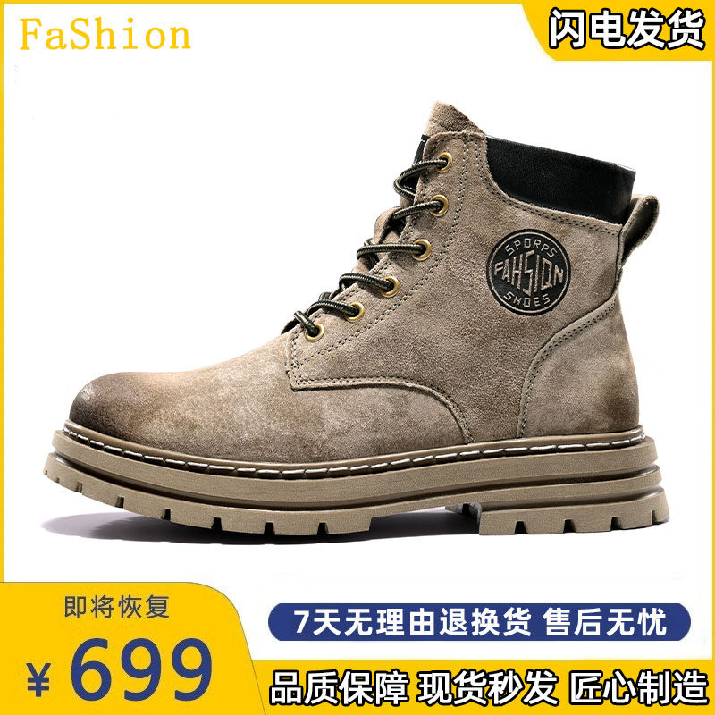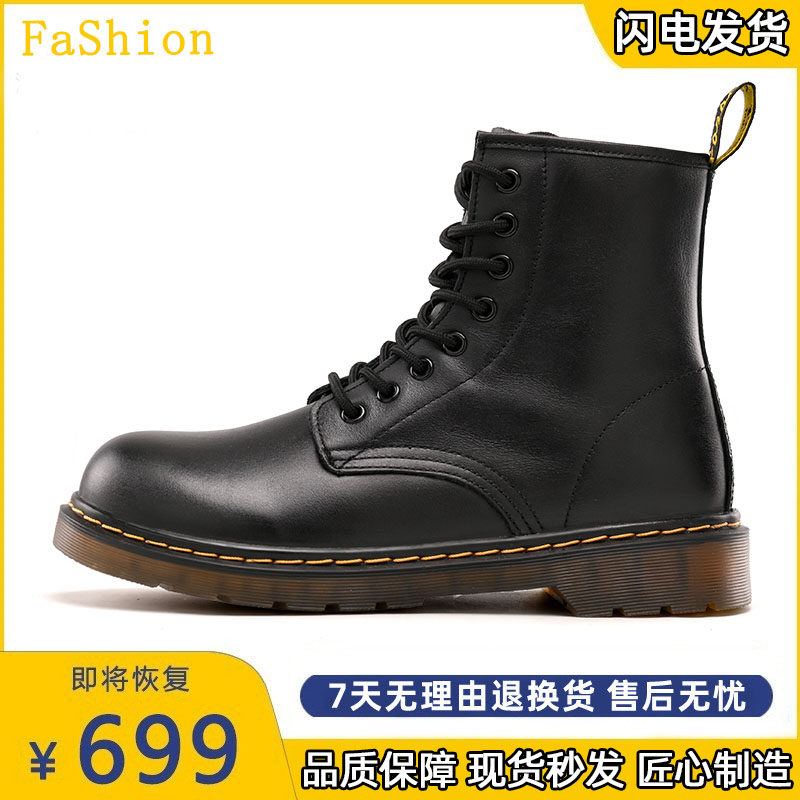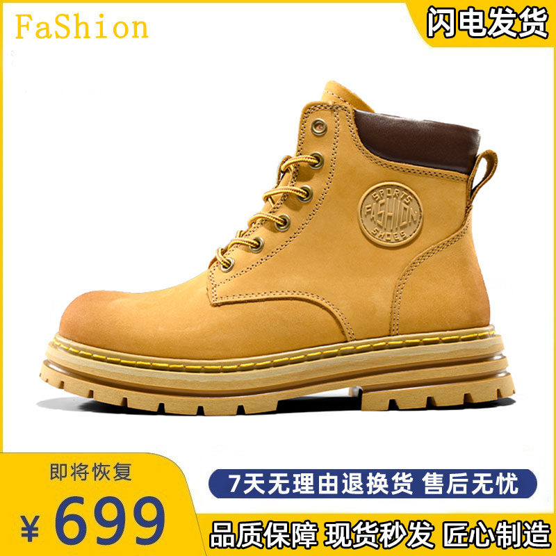 踢不烂大黄靴真皮马丁靴女2025新款厚底短筒工装靴英伦风增高男鞋