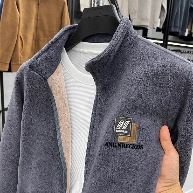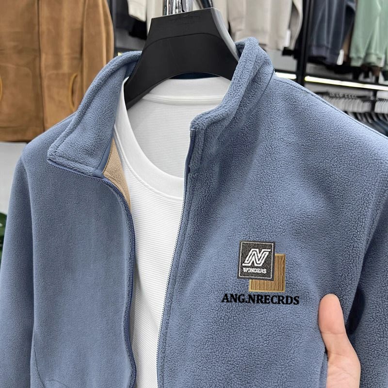 男士2024秋冬新款双面奥粒绒卫衣外套加厚保暖上衣外搭立领夹克衫