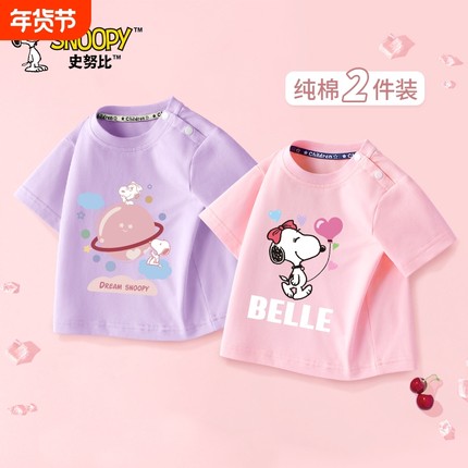 史努比儿童短袖女童宝宝t恤夏季夏装纯棉薄款婴幼儿2025新款上衣