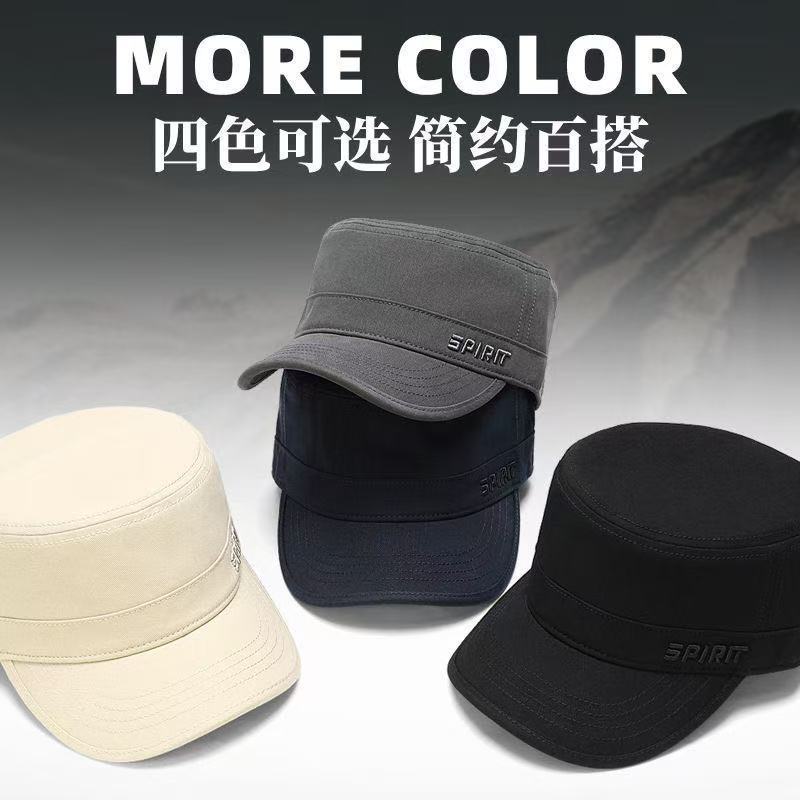 封口平顶帽子春秋四季鸭舌帽调节百搭中老年男士出游休闲刺绣