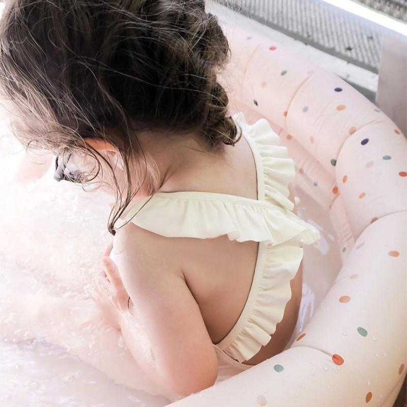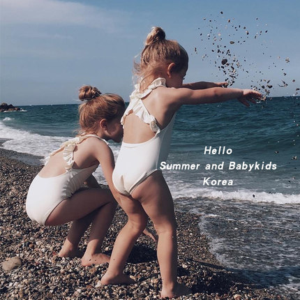 INS儿童连体泳衣女童复古北欧风宝宝荷叶边白色吊带游泳衣韩泳装