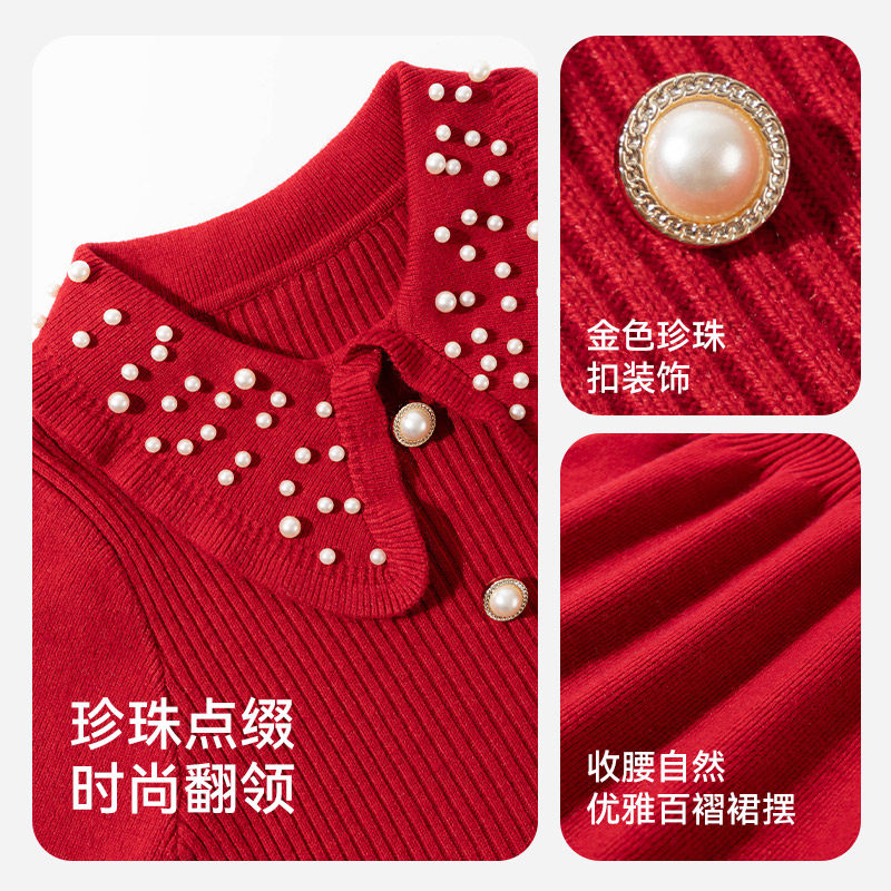 真维斯童装女童秋冬款连衣裙儿童红色新年款毛衣裙女大童冬季裙子