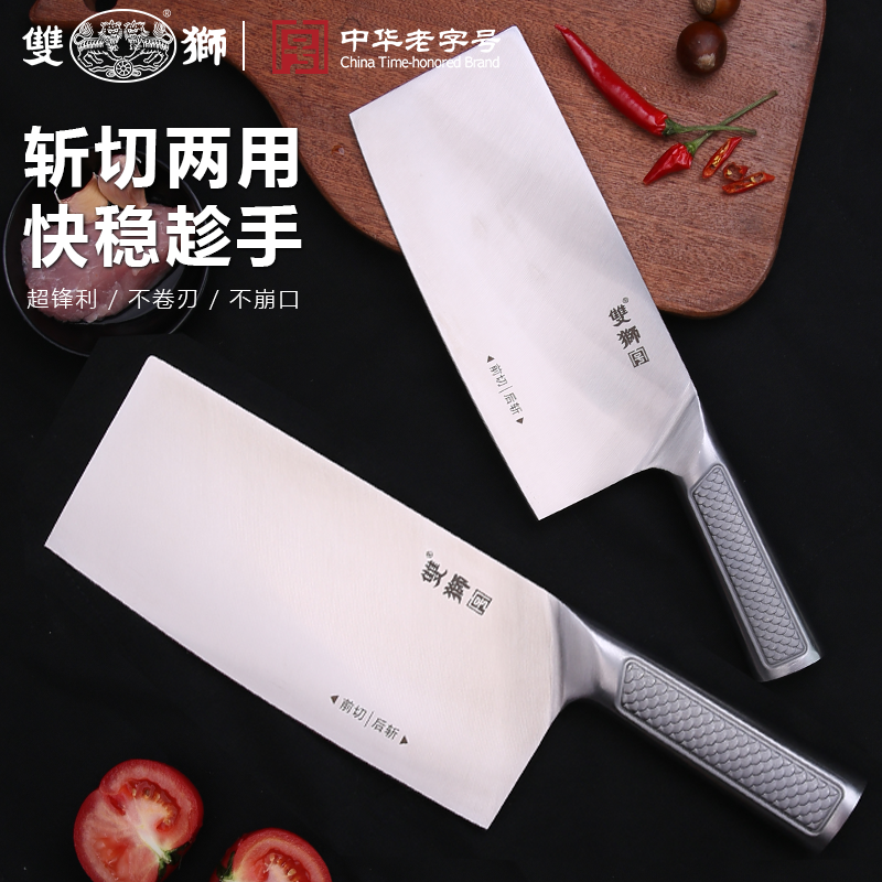 双狮菜刀家用不锈钢斩切刀厨师专用切菜刀砍切刀斩切两用厨房刀具