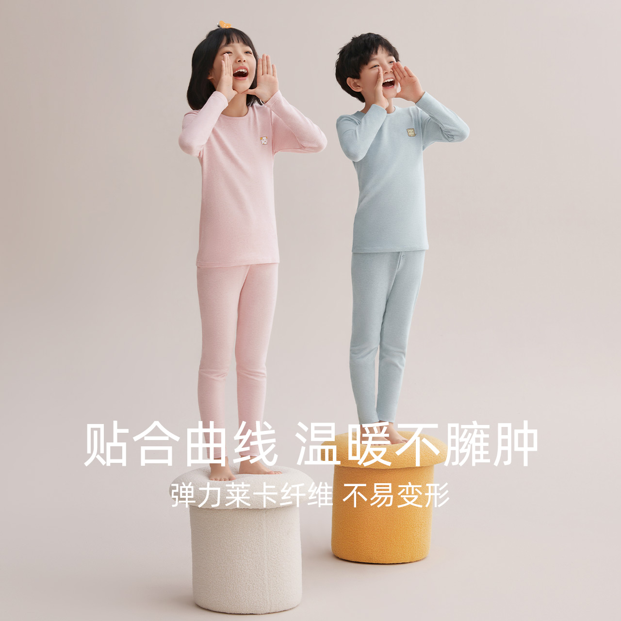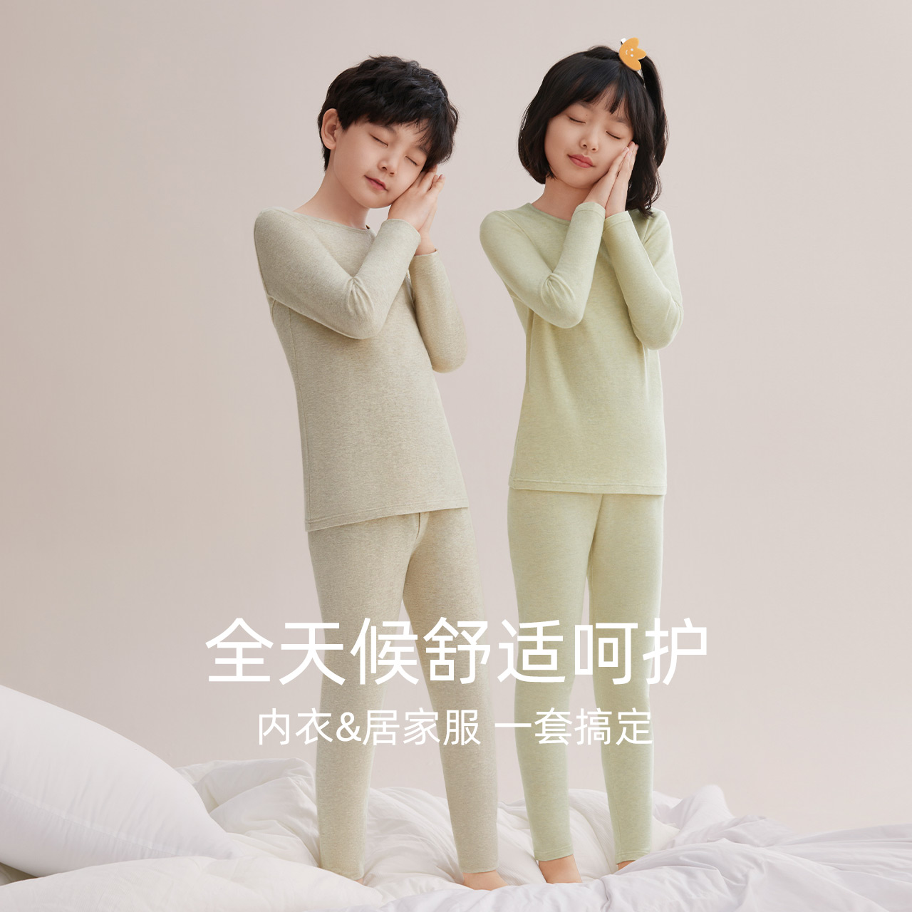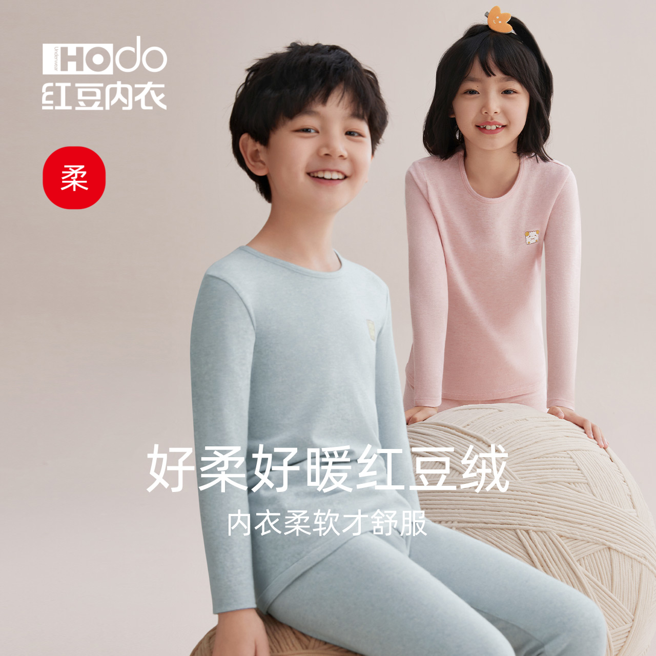 红豆绒棉花糖儿童内衣秋衣秋裤色纺男女孩学生棉毛衫加厚保暖套装