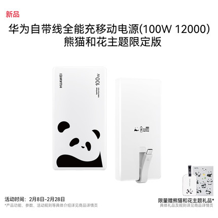 新品 华为自带线全能充移动电源(100W 12000)充电宝3C认证可上飞机高品质芯华为充电宝熊猫和花主题限定版