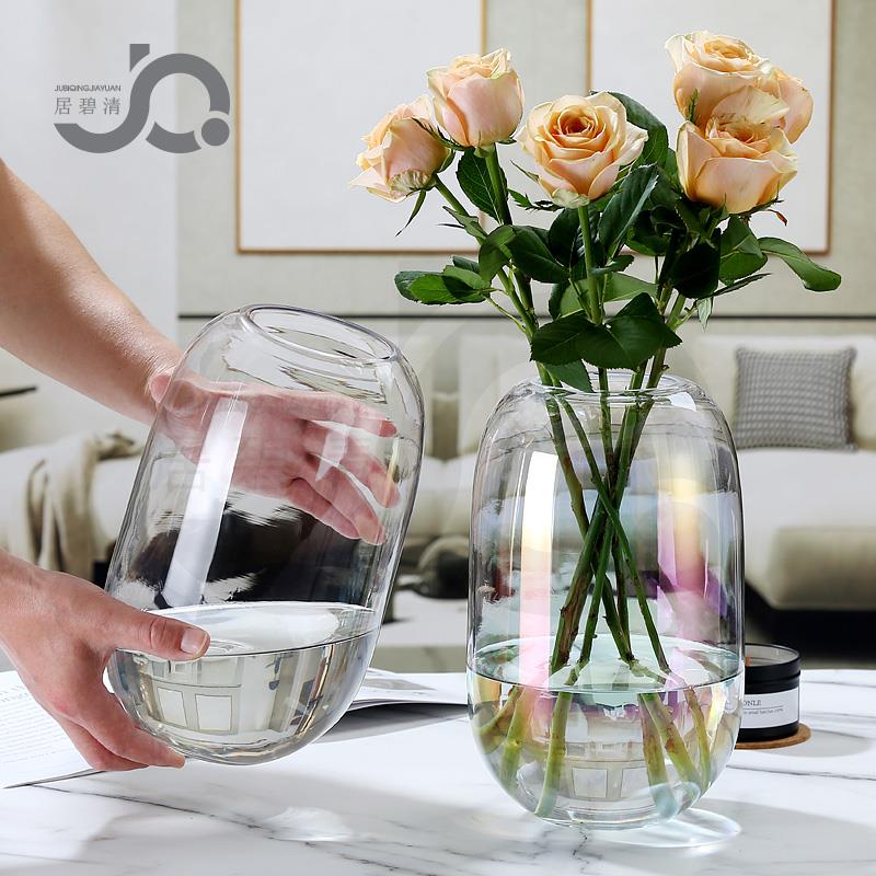 欧式现代简约束口玻璃花瓶小口鲜花富贵竹插花装饰摆件餐桌玄关