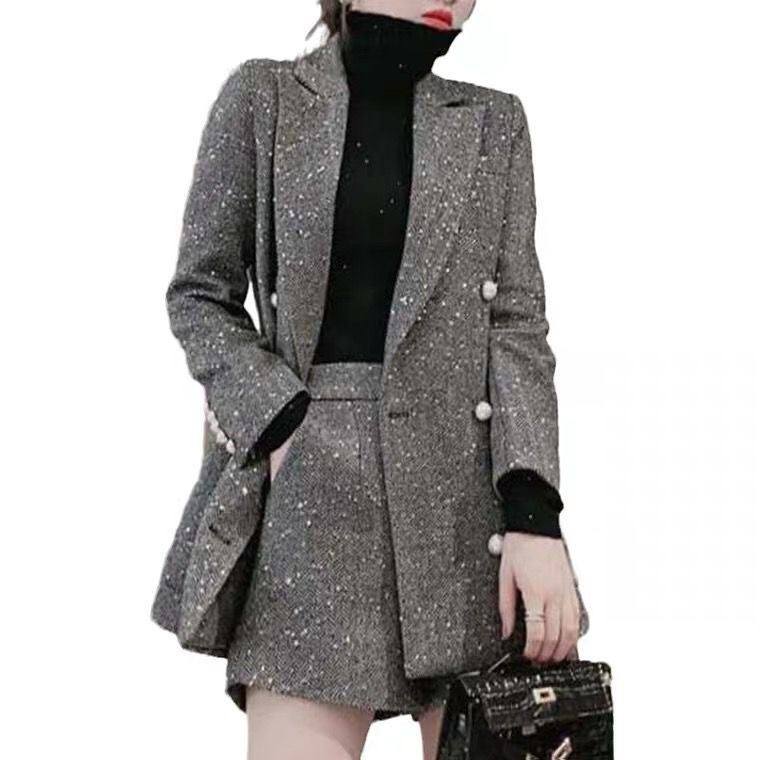 小香名媛风西装套装女2025年春秋季新款休闲时尚短裤两件套洋气潮
