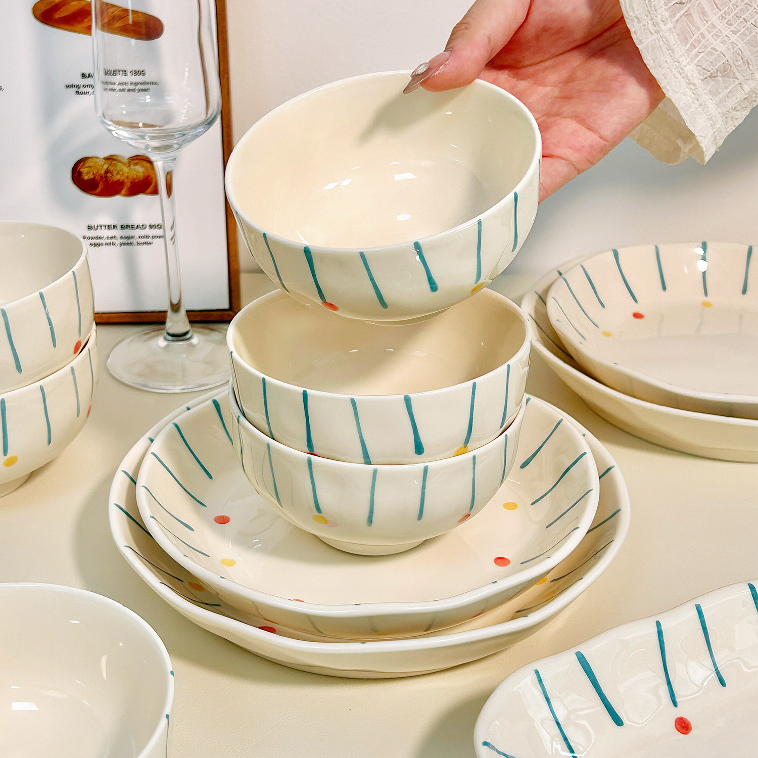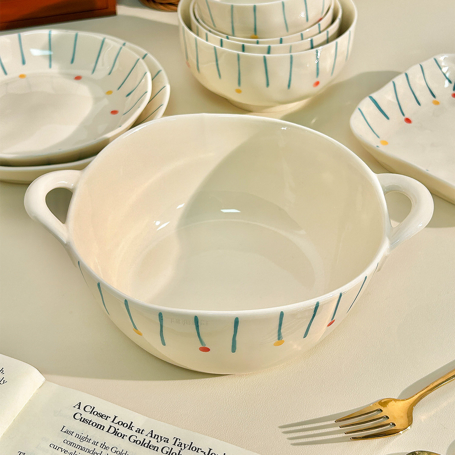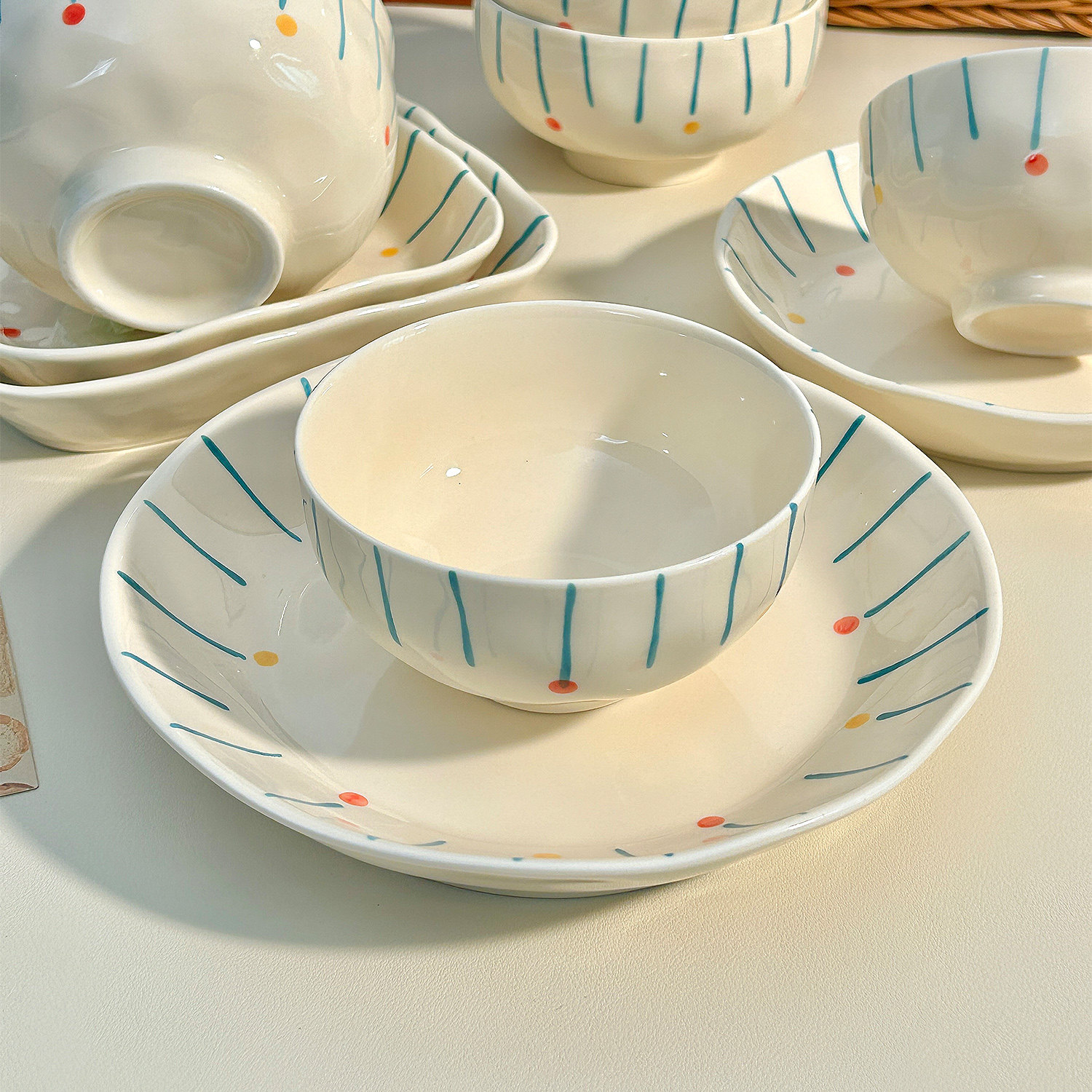可爱釉下彩盘子菜盘家用汤碗吃米饭碗好看的餐具2025新款陶瓷碗碟