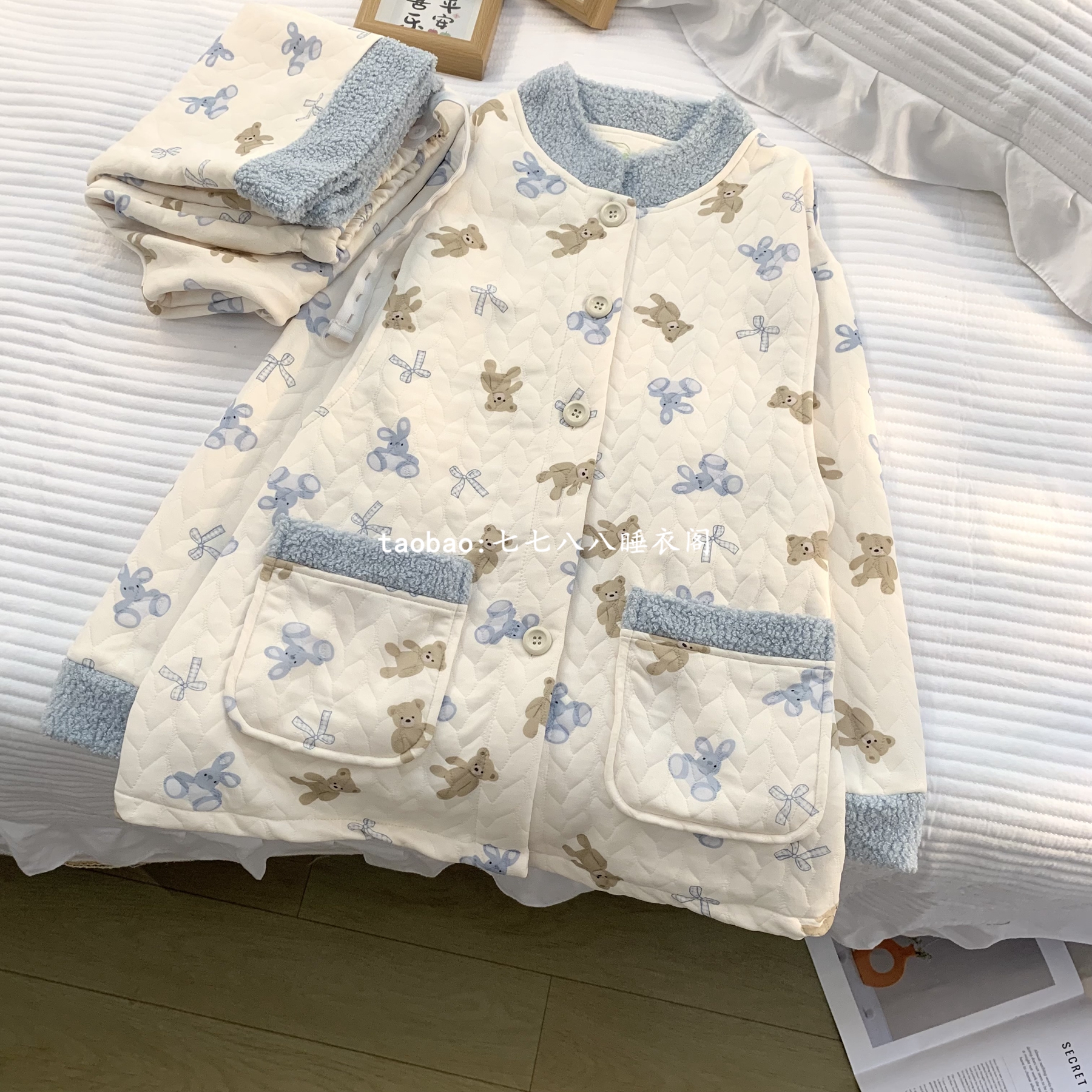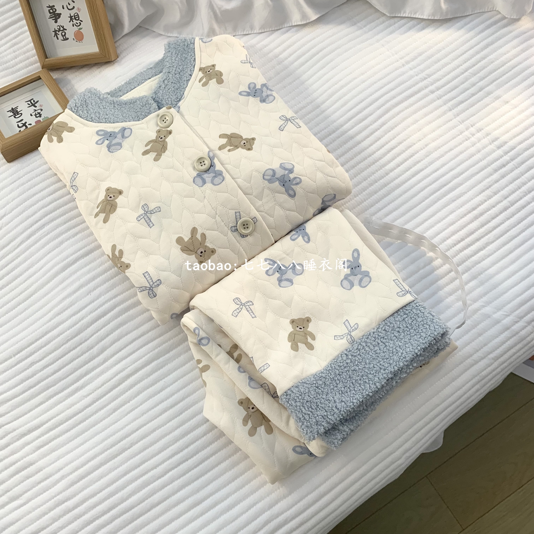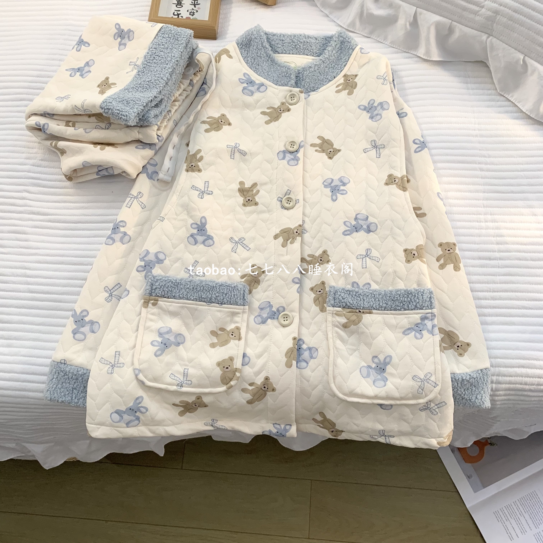 秋冬季加厚小熊空气棉月子服11月份12孕妇产后纯棉开衫款保暖睡衣