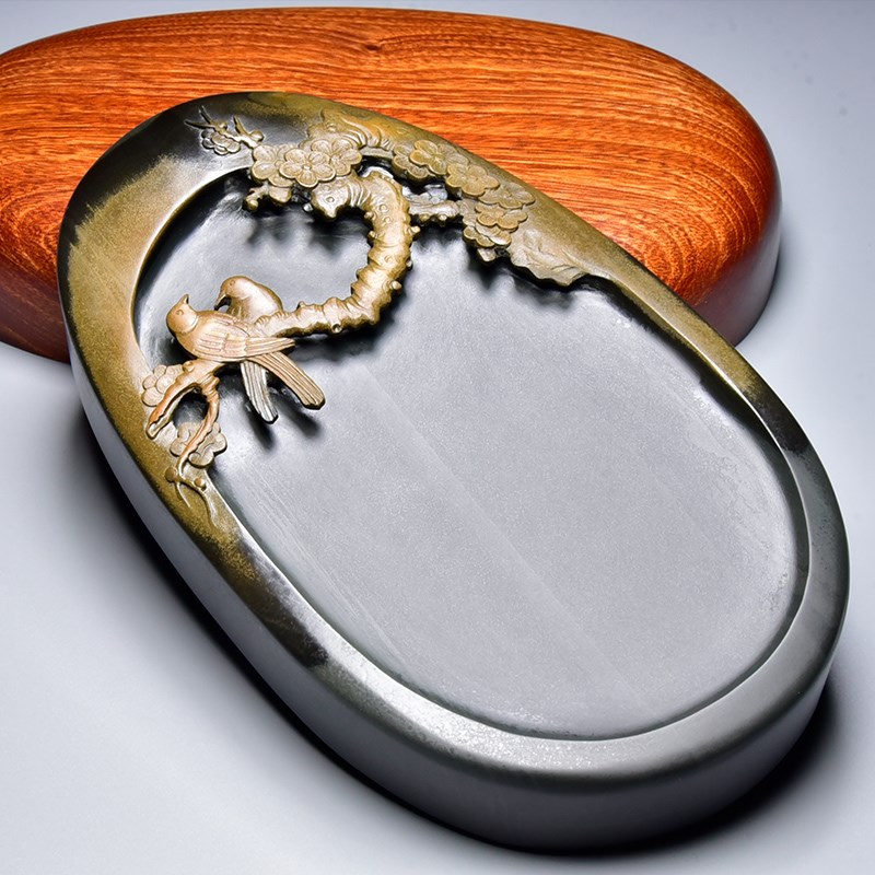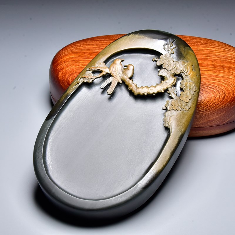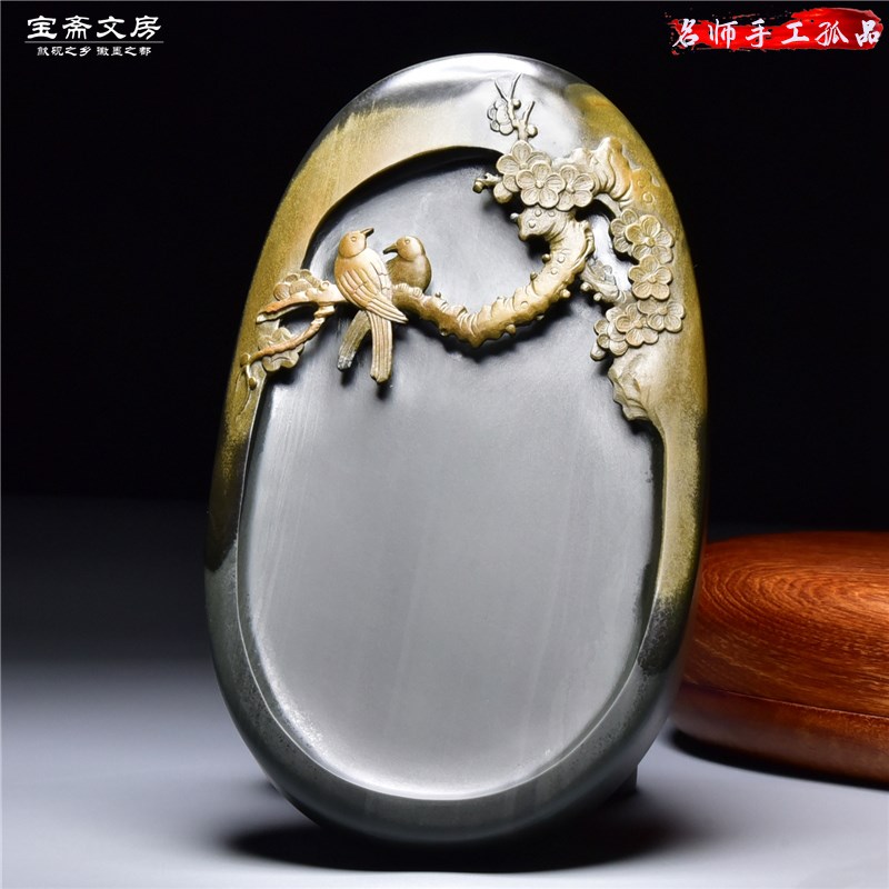 孤品名师砚台 暗香 精品老坑金晕籽料歙砚原石龙尾砚高档文房收藏