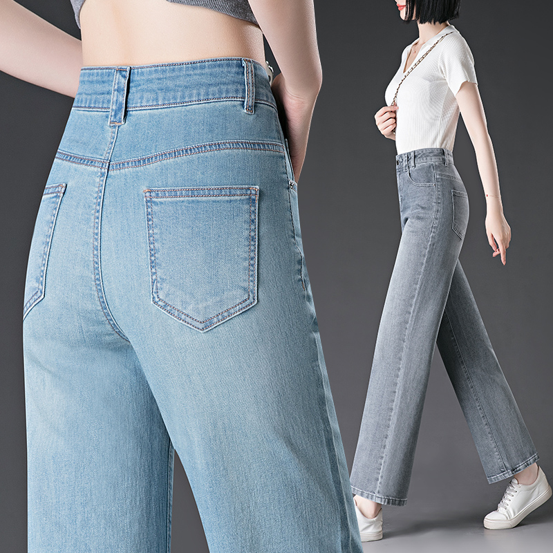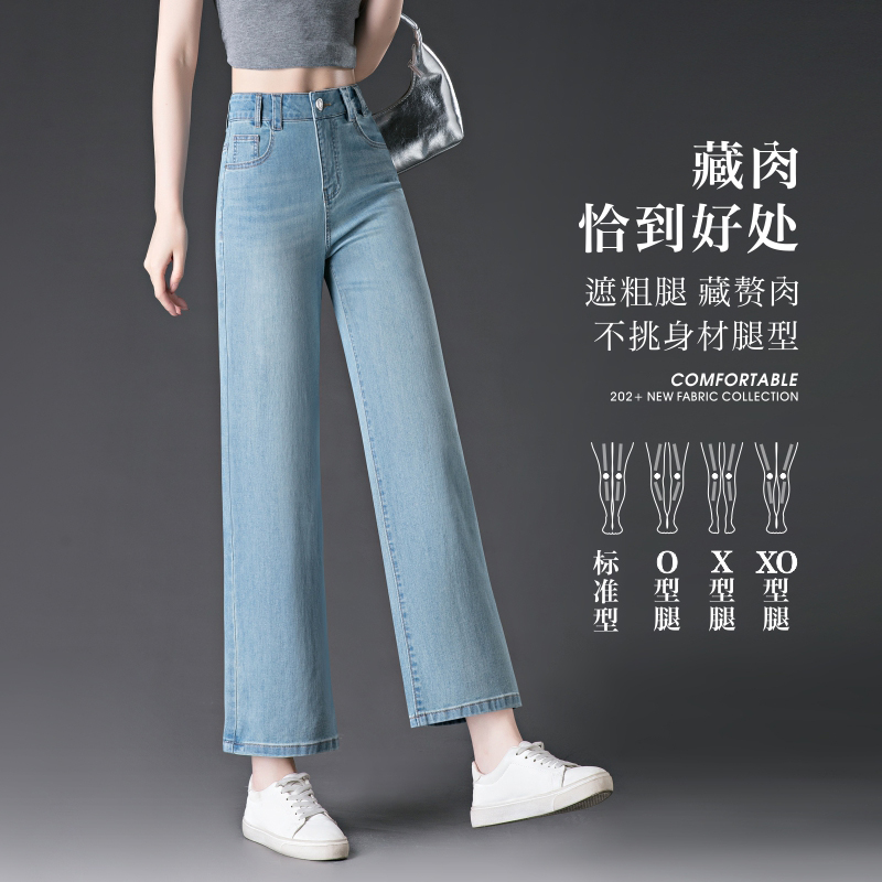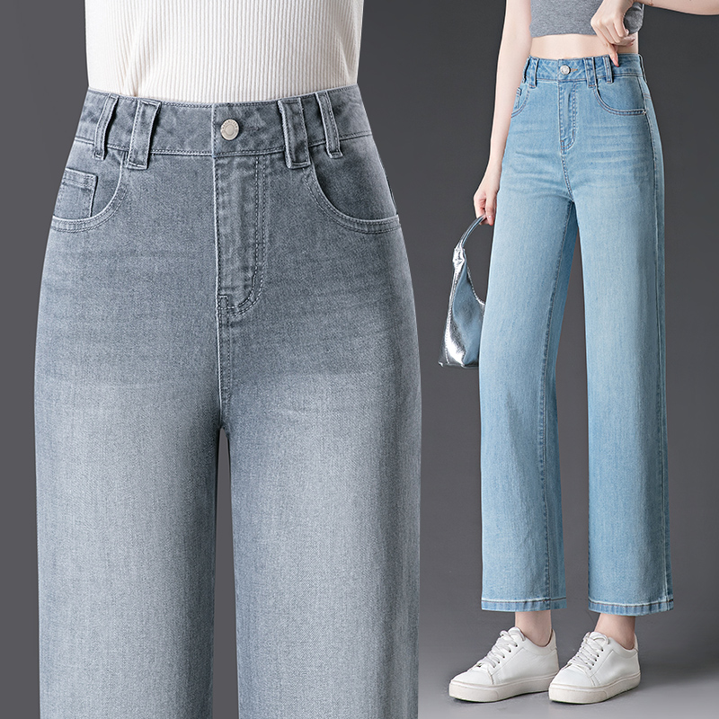 九分直筒牛仔裤女夏季薄款2025新款小个子显瘦高腰宽松窄版阔腿裤