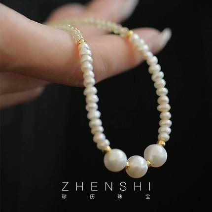珍氏珠宝淡水keshi珍珠项链女款 S925银轻奢小众高级感水晶颈链