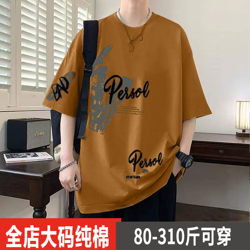 加肥加大新款美式短袖T恤男潮牌宽松大码纯棉半截袖薄款休闲体恤