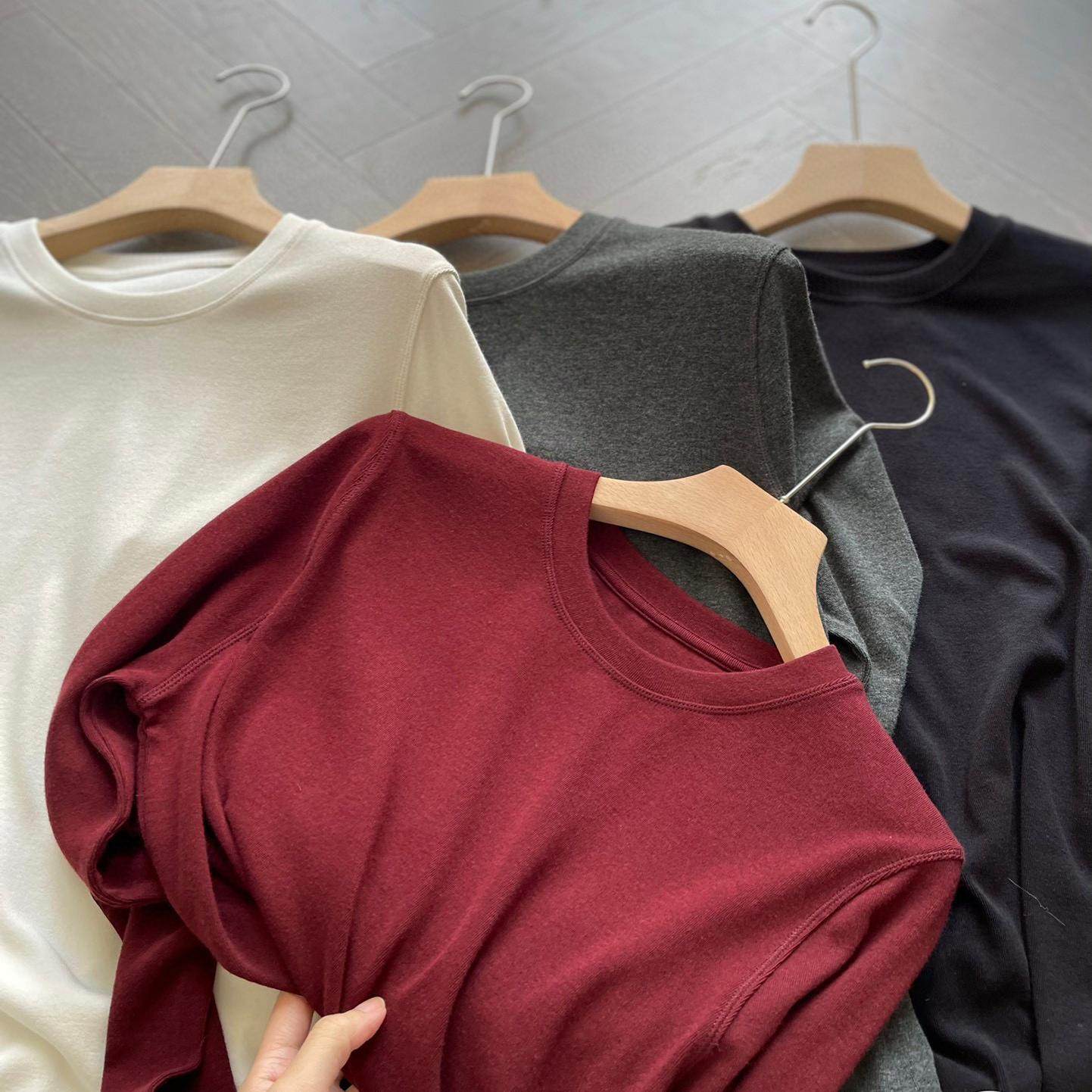 新款row云朵感细腻澳绒高士线轻磨毛柔软舒适保暖弹力圆领长袖T恤